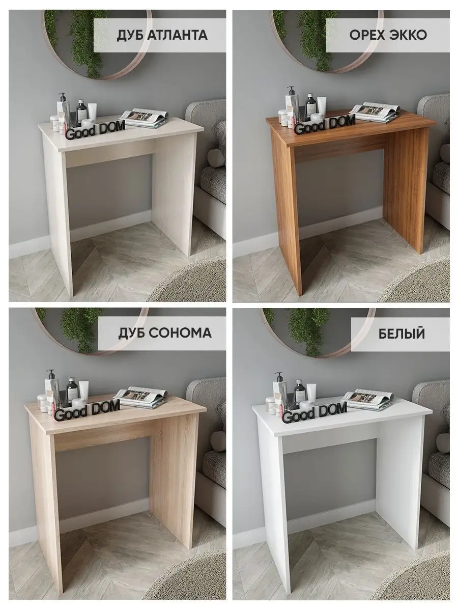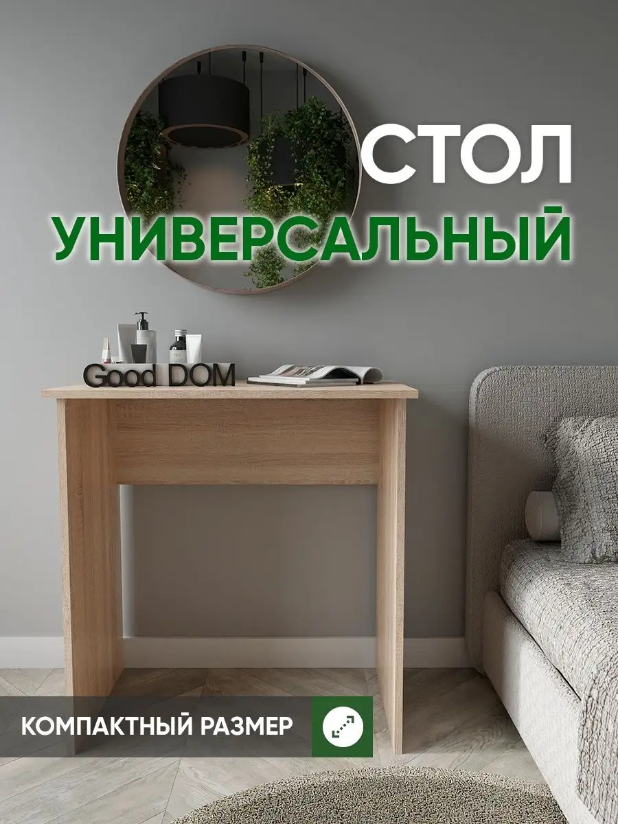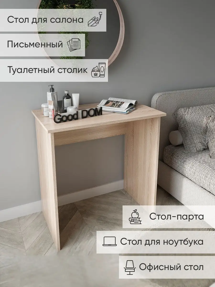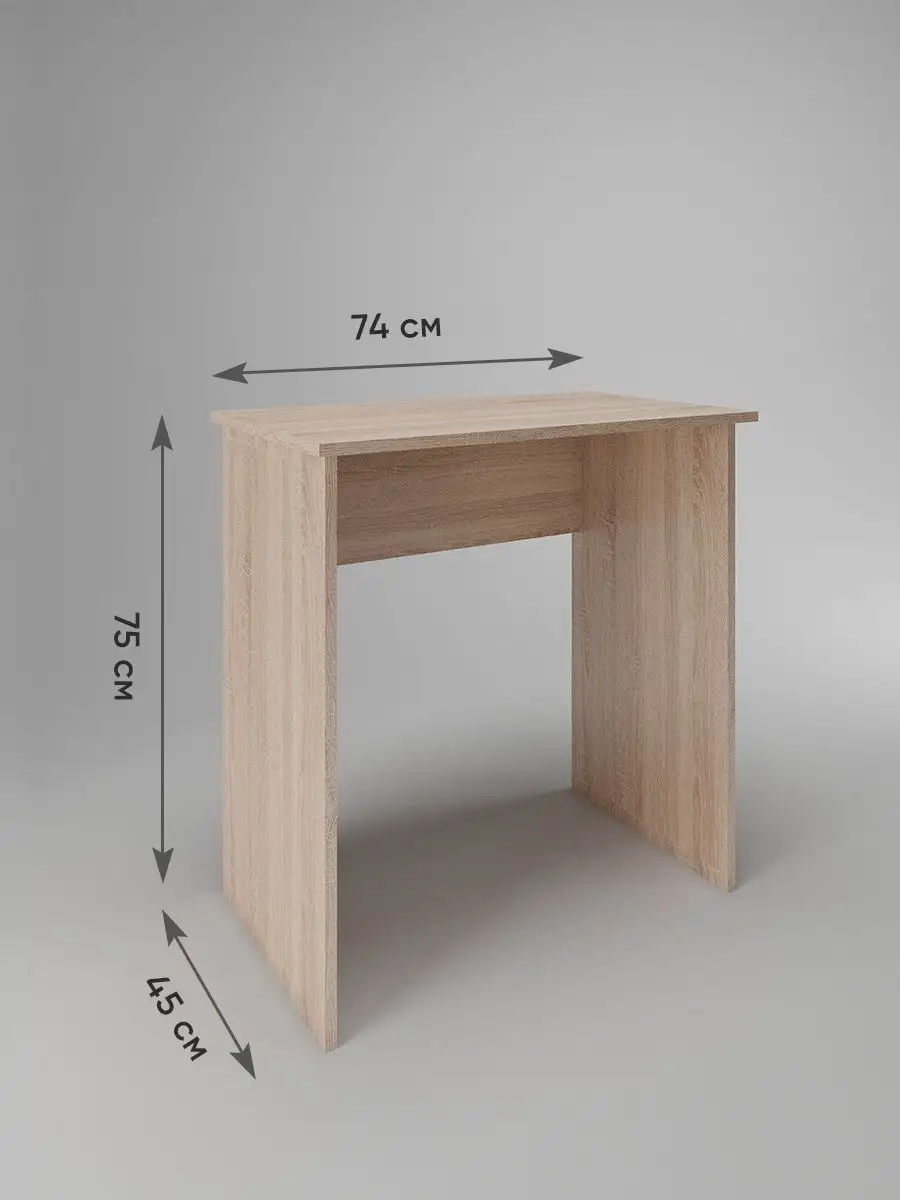Нужно рабочее место, стол, но в комнату его, кажется, уже не уместить - все и так заставлено? Присмотритесь к нашему небольшому письменному столу! Благодаря его компактным размерам, узкому столику уголок в вашей квартире непременно найдется место даже в маленькой комнате. Стол компьютерный подойдет в гостиную для ноутбука, как стол для пк, в детскую - как рабочий стол школьника ученика как парта, как стол туалетный (гримерный стол) для косметики в спальню, - везде, где есть немного свободного места. Так же столик отлично подойдёт как офисный стол, или в салон - маникюрный столик, стол визажиста. Минималистичное исполнение позволяет деревянному столу не бросаться в глаза, он почти незаметен. Цвета: белый, дуб сонома, орех. Размеры: высота-75 см, ширина-74 см, глубина-45 см, вес-12,4 кг.