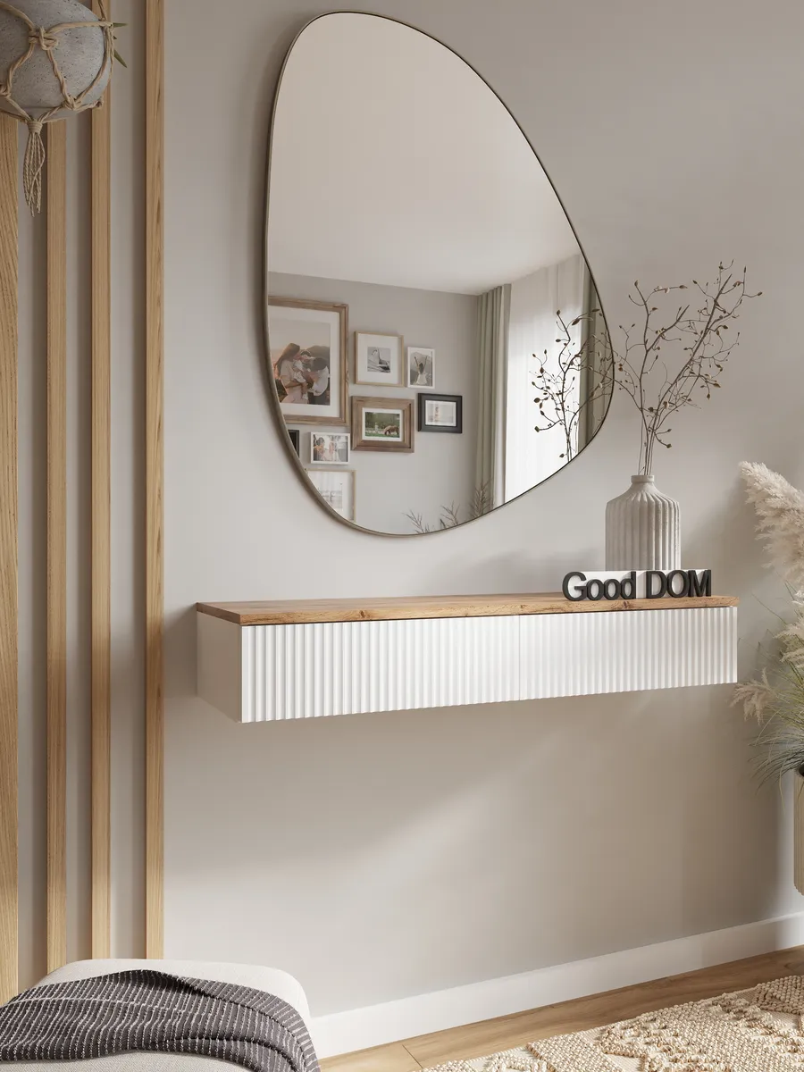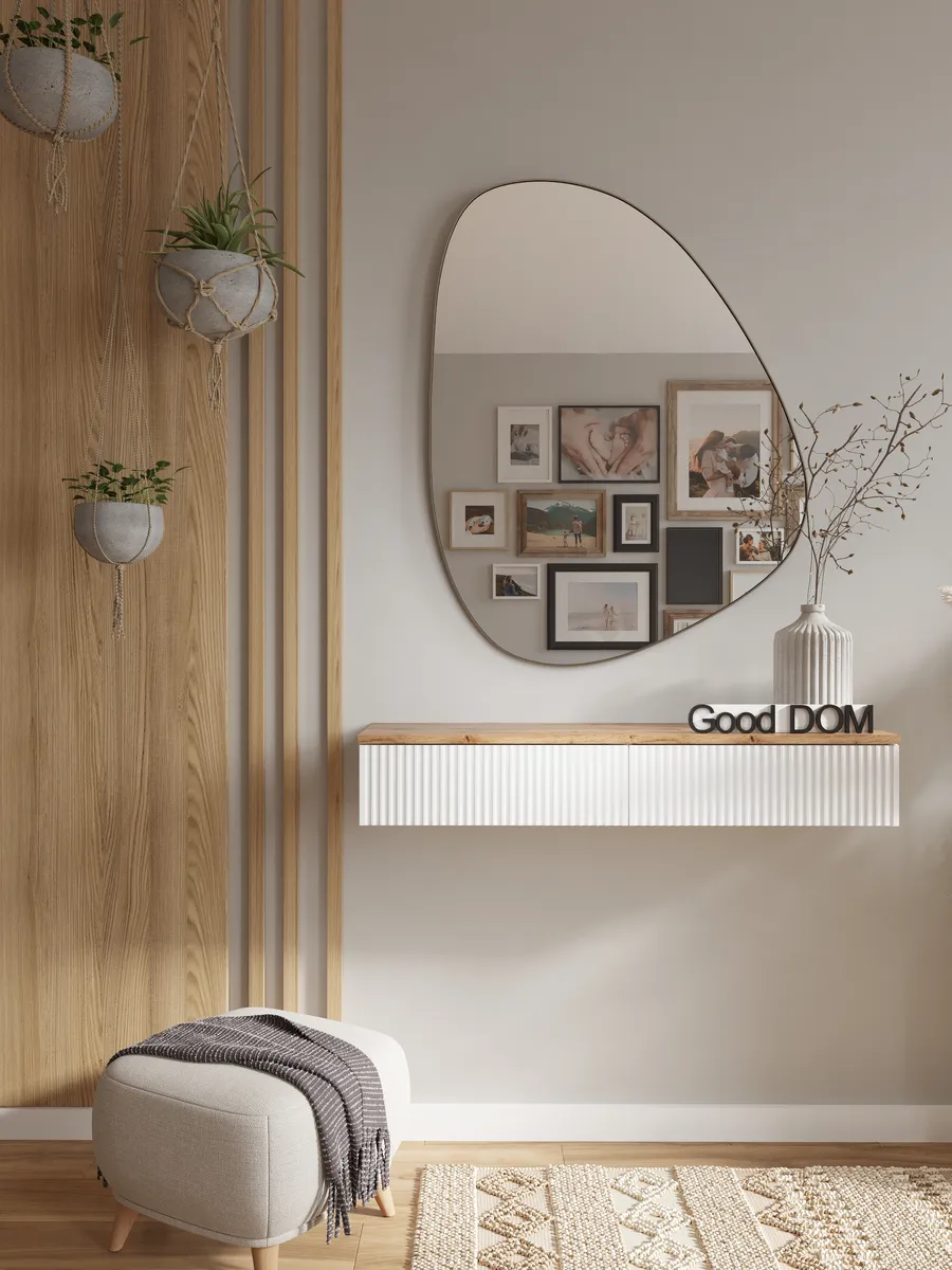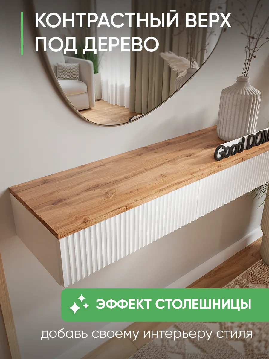 Зеркало в комплекте помогает создать полный образ. А если вы мечтаете о классическом трельяже, обратите внимание: конструкция стола позволяет при желании заменить стандартное зеркало на трехстворчатое, превратив зону в профессиональную гримерную. Настенный или напольный вариант монтажа позволяет выбрать оптимальный способ установки под ваш интерьер. Золотые акценты на фурнитуре добавляют изделию изысканности и подчеркивают его уникальность.
