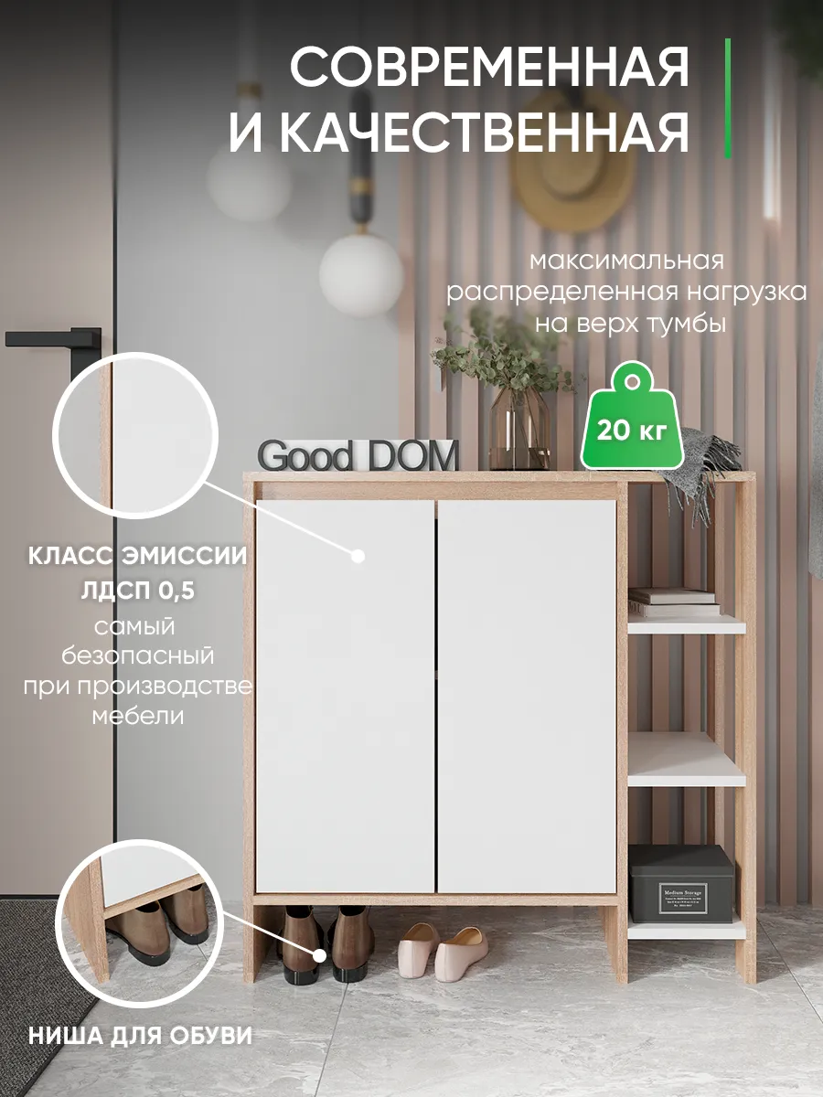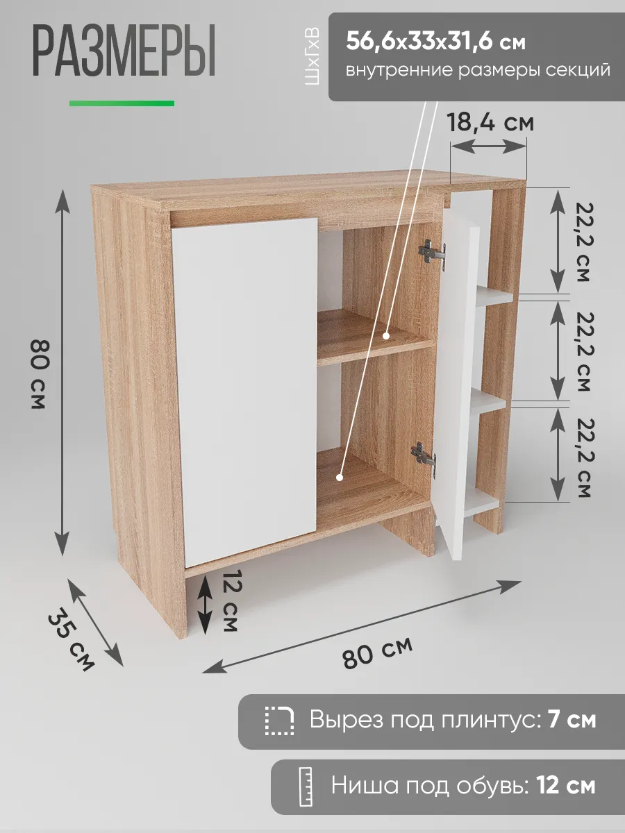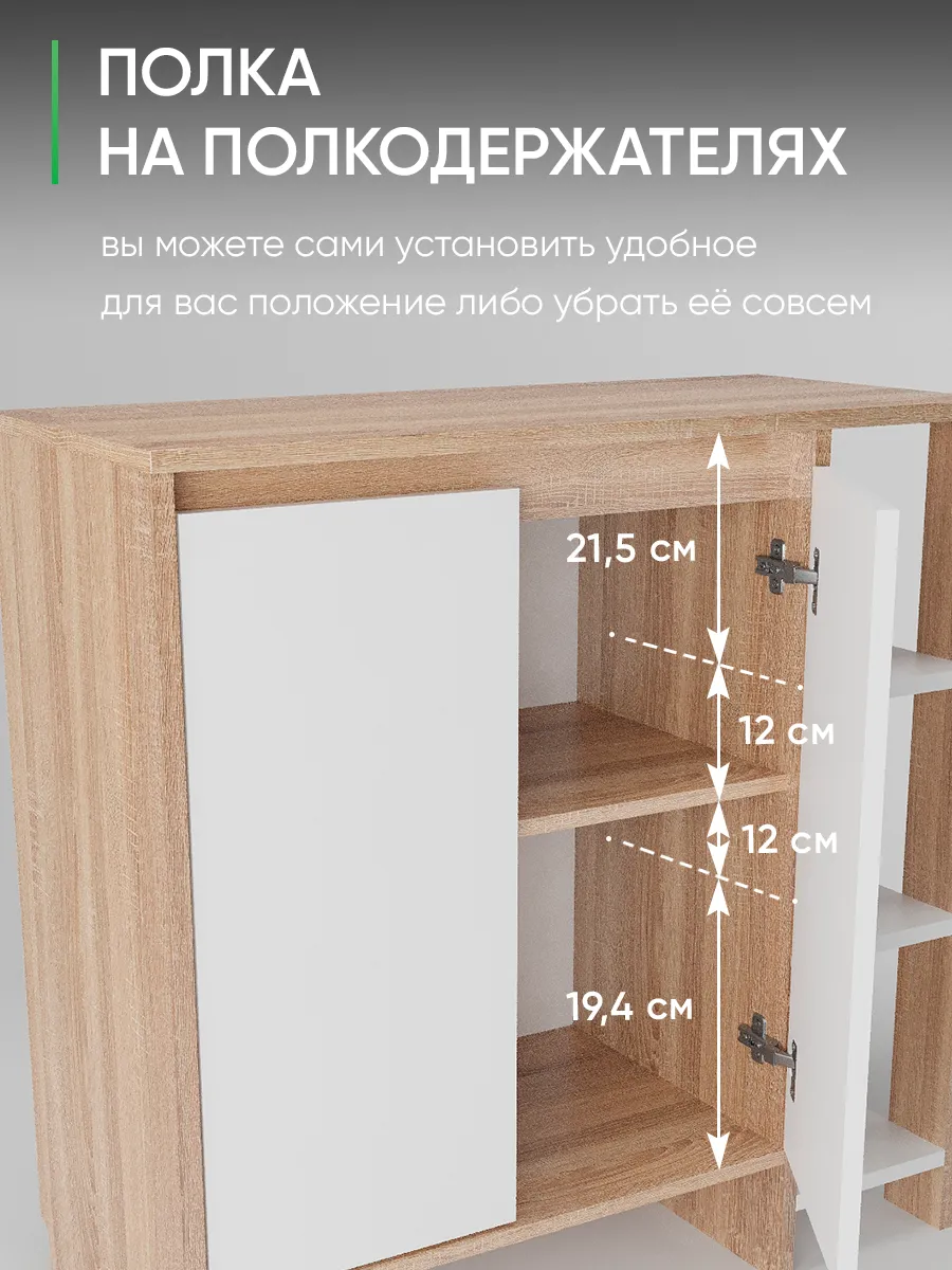 Тумба-комод с распашными дверками и тремя полками сбоку поможет решить проблему с хранением вещей в любой комнате. Универсальное исполнение и современный дизайн позволяет расположить тумбочку как в квартире или доме, так и в офисе, на даче. Комод станет идеальным вариантом грамотной организации системы хранения в малогабаритной прихожей или коридоре. В прихожей тумба с полками может использоваться для хранения коробок, головных уборов, обуви, зонтов и прочих нужных вещей. Универсальный комод может быть расположен в гостиной или зале, спальне или комнате ребенка, в гардеробной или кладовой у стенки, в офисном, балконном или дачном помещении, в раздевалке. В спальне или детской на ней удобно разместяться книги, одежда, документы, косметика и многое другое. Закрытая тумба с распашными дверками имеет две полки внутри и три открытые полки сбоку, а так же достаточно большую и удобную поверхность сверху, где можно разметить декор и сделать ваш интерьер интереснее. Разборная модель поставляется со всем необходимым для быстрой сборки: удобная инструкция со схемой доступна и понятна, качественная фурнитура в комплекте. Тумба-комод изготовлено на современном российском производстве (ЧПУ - станки), служба поддержки отвечает на все вопросы, сломанные и недоукомплектованные детали высылаются. Товар поставляется в надежной упаковке из гофрокартона с пенопластом по всему периметру и стяжкой для сохранности в процессе доставки.