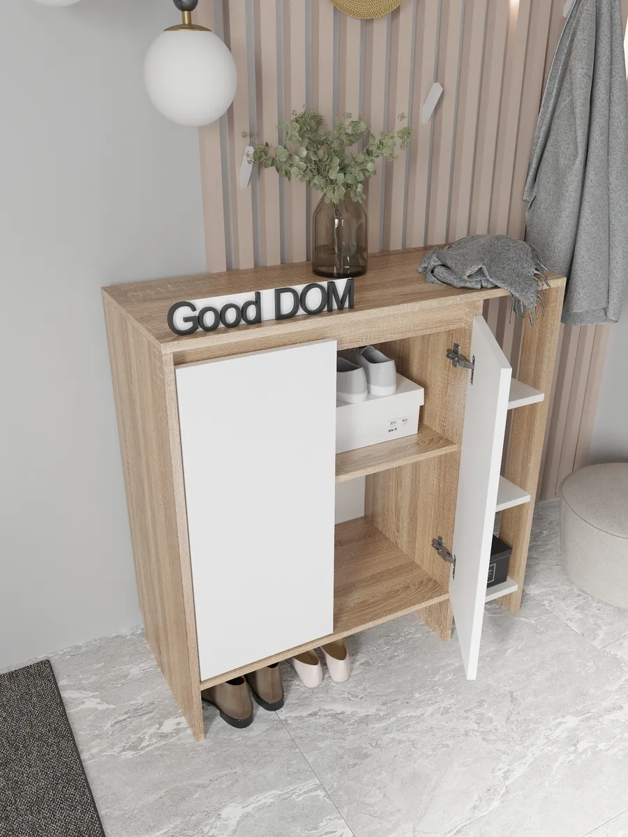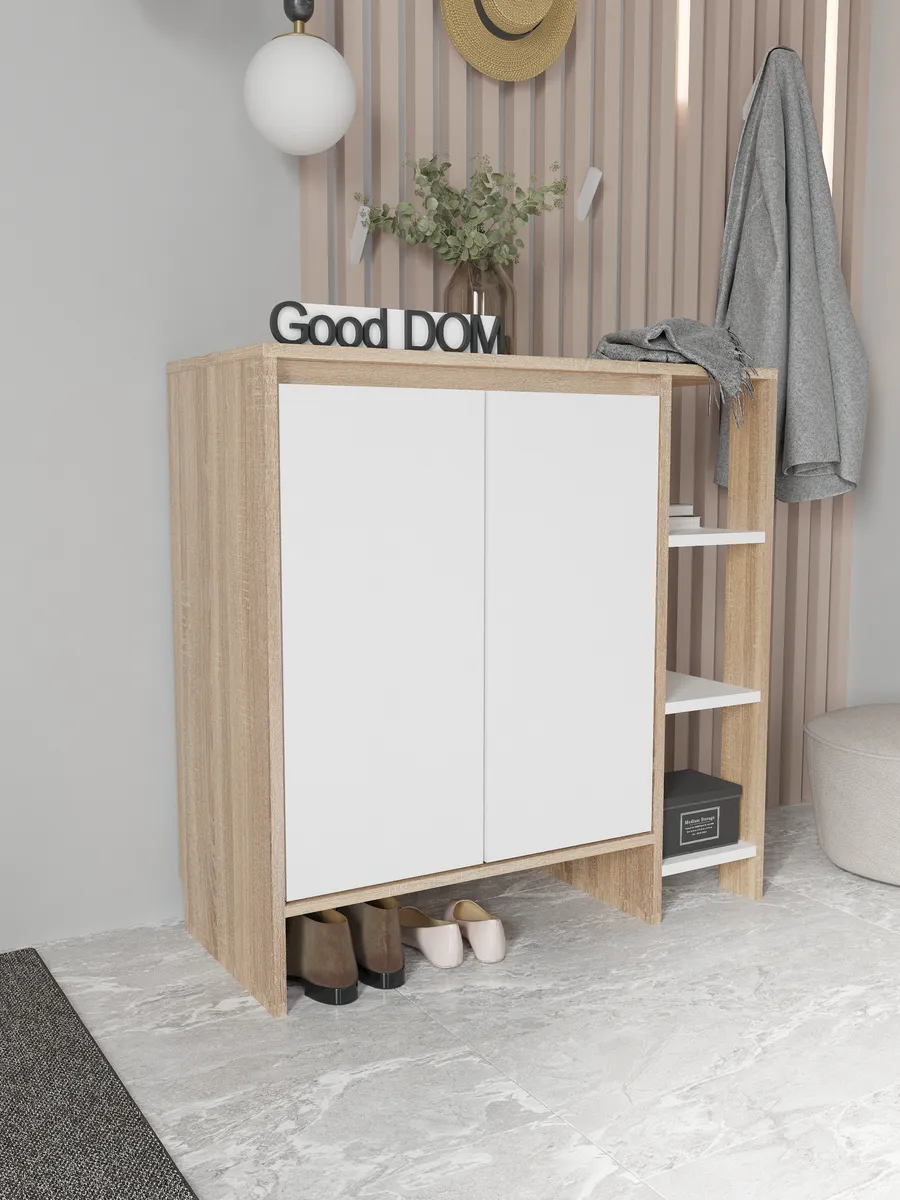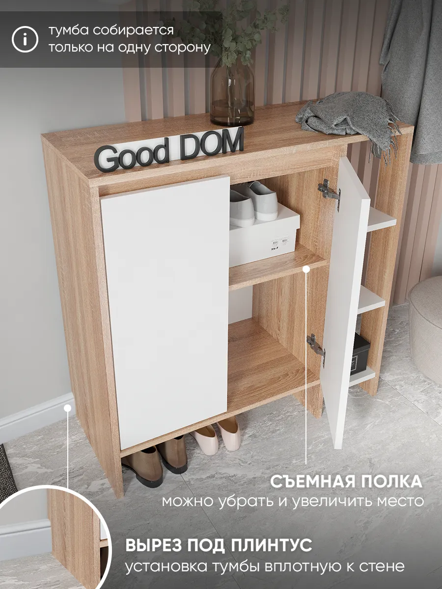 Тумба-комод с распашными дверками и тремя полками сбоку поможет решить проблему с хранением вещей в любой комнате. Универсальное исполнение и современный дизайн позволяет расположить тумбочку как в квартире или доме, так и в офисе, на даче. Комод станет идеальным вариантом грамотной организации системы хранения в малогабаритной прихожей или коридоре. В прихожей тумба с полками может использоваться для хранения коробок, головных уборов, обуви, зонтов и прочих нужных вещей. Универсальный комод может быть расположен в гостиной или зале, спальне или комнате ребенка, в гардеробной или кладовой у стенки, в офисном, балконном или дачном помещении, в раздевалке. В спальне или детской на ней удобно разместяться книги, одежда, документы, косметика и многое другое. Закрытая тумба с распашными дверками имеет две полки внутри и три открытые полки сбоку, а так же достаточно большую и удобную поверхность сверху, где можно разметить декор и сделать ваш интерьер интереснее. Разборная модель поставляется со всем необходимым для быстрой сборки: удобная инструкция со схемой доступна и понятна, качественная фурнитура в комплекте. Тумба-комод изготовлено на современном российском производстве (ЧПУ - станки), служба поддержки отвечает на все вопросы, сломанные и недоукомплектованные детали высылаются. Товар поставляется в надежной упаковке из гофрокартона с пенопластом по всему периметру и стяжкой для сохранности в процессе доставки.