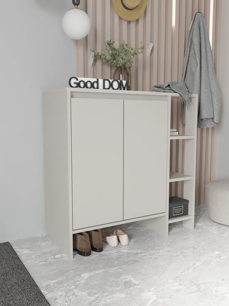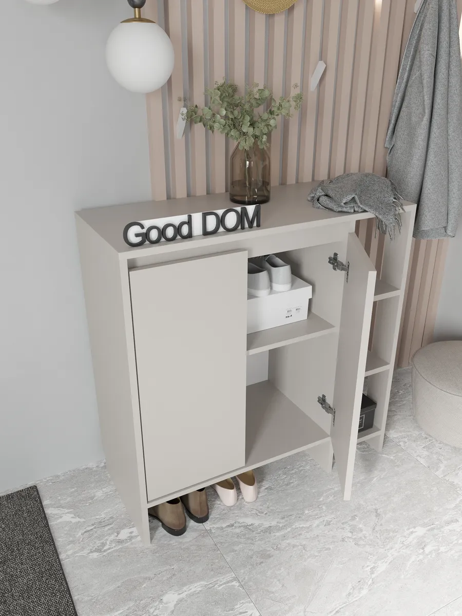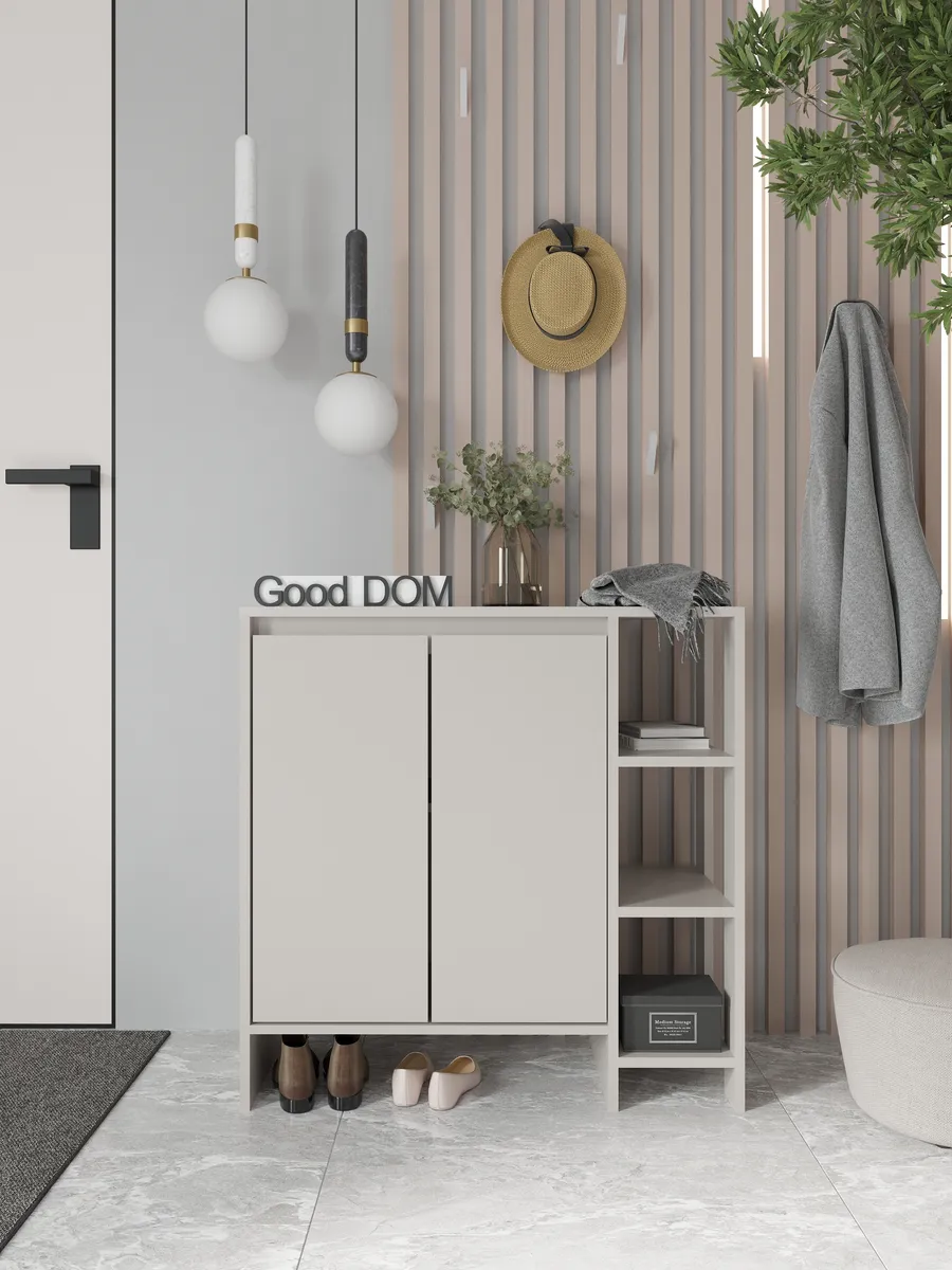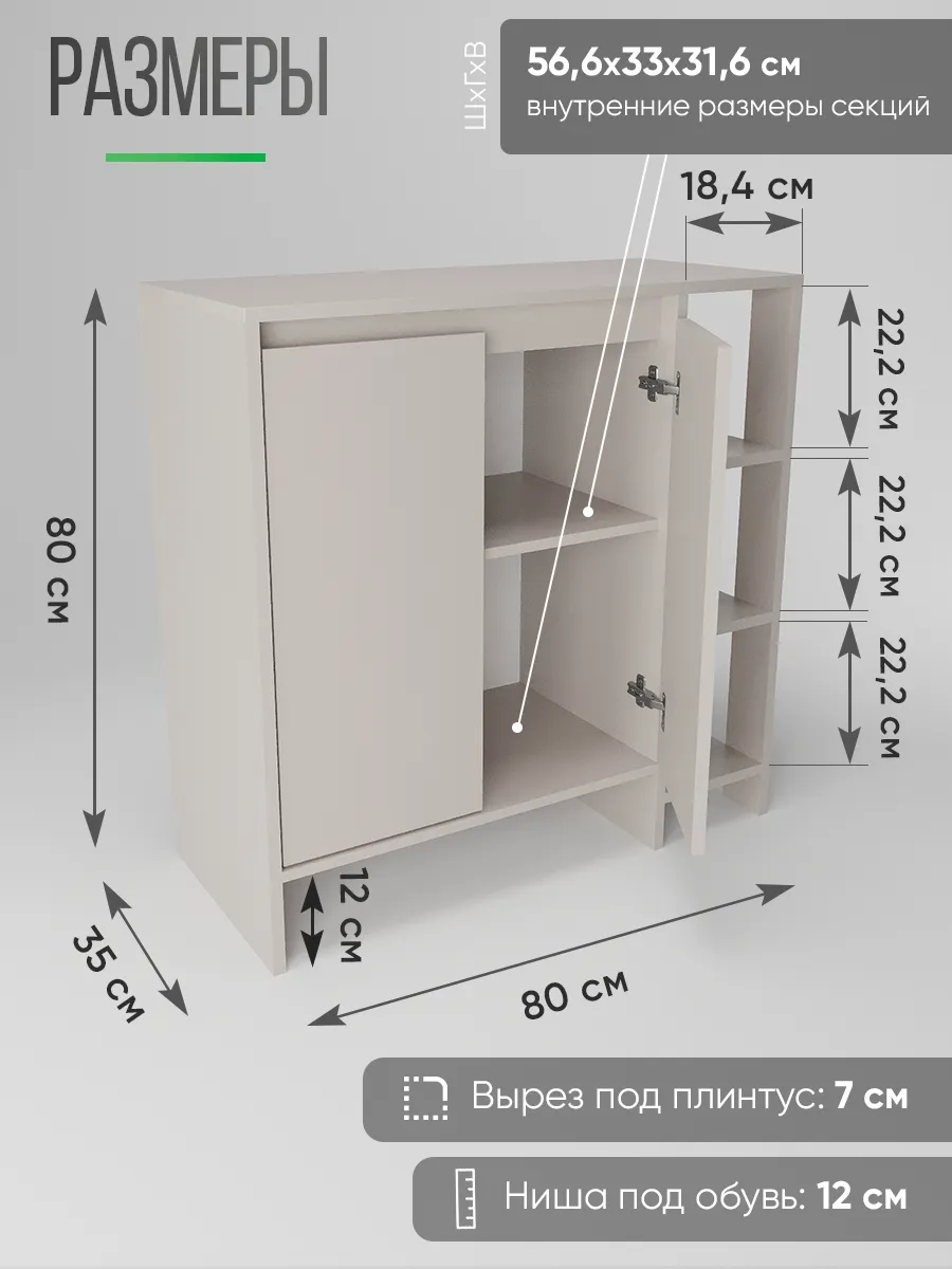 Эта деревянная тумба с дверками и полками станет незаменимым элементом вашего интерьера, обеспечивая удобное хранение вещей в прихожей или коридоре. Благодаря своему универсальному дизайну, она легко впишется в любой стиль, будь то современный или классический. Тумба оснащена двумя закрытыми полками и тремя открытыми сбоку, что позволяет организовать пространство максимально эффективно. В прихожей она станет идеальным местом для хранения обуви, зонтов и других аксессуаров, а в спальне или детской комнате – для книг, одежды и косметики.