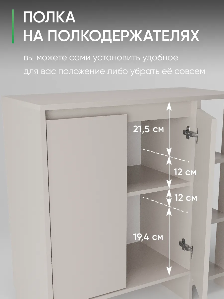 Эта модель отличается прочностью и долговечностью благодаря использованию качественных материалов и современным технологиям производства. Напольная конструкция обеспечивает устойчивость, а деревянная поверхность добавляет уюта и тепла в ваш дом. Закрытые полки защищают вещи от пыли и посторонних взглядов, что особенно важно для хранения личных предметов.