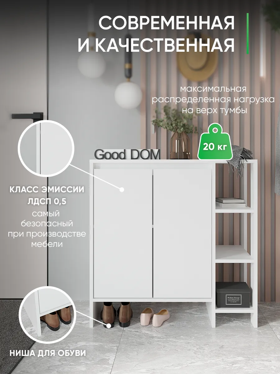 Стильная тумба для порядка и уюта: модель продумана для того, чтобы прихожая выглядела аккуратно каждый день. Компактные габариты и узкая глубина помогают разместить её даже там, где важен каждый сантиметр, поэтому она выручит, когда нужна маленькая система хранения. Конструкция напольная, устойчивая; предусмотрен вырез под плинтус и нижняя ниша для обуви. Лаконичная белая отделка делает изделие универсальным решением для дома.