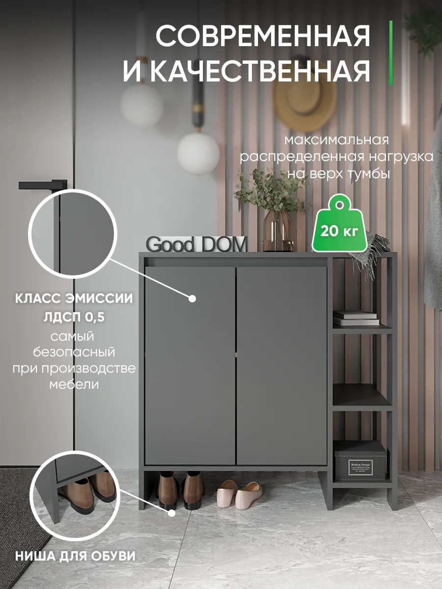 Стильная тумба для дома и офиса помогает навести порядок и экономит место: компактная, но вместительная, она идеально вписывается в небольшие пространства. Модель создана в современном минималистичном дизайне и подходит как в прихожую, так и в любую зону, где нужна аккуратная система хранения: в коридор, на балкон, в спальню или даже на кухню. Эта напольная мебель устойчиво стоит на аккуратных ножках, а продуманная ниша снизу удобна для обуви.