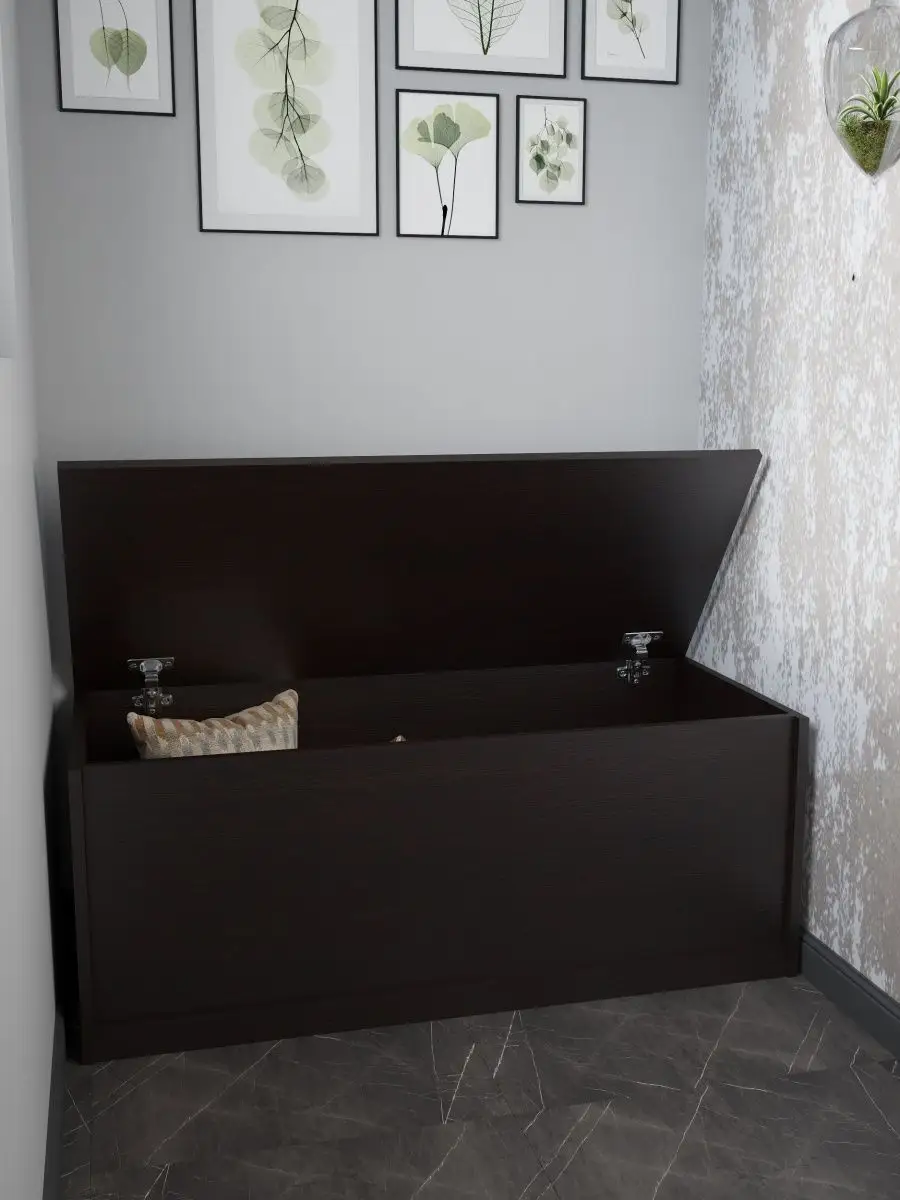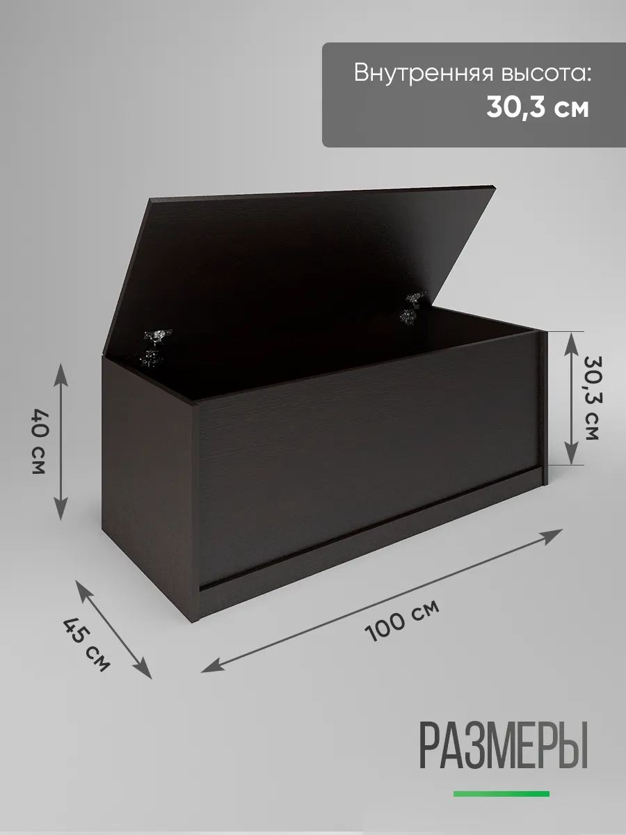 Размеры тумбы ящика с откидной крышкой: ширина 100 см, высота 40 см, глубина 45 см. Доступные цвета: белый, орех, сонома, атланта, венге, дуб золотой, антрацит, дуб катания. Можно положить сверху матрасик и этим сделать напольный диванчик на балкон или в зал, длинную тумбу с сиденьем в прихожую, диванчик для офиса, дачный диван, садовая мебель - своего рода топчан для отдыха в любом помещении.