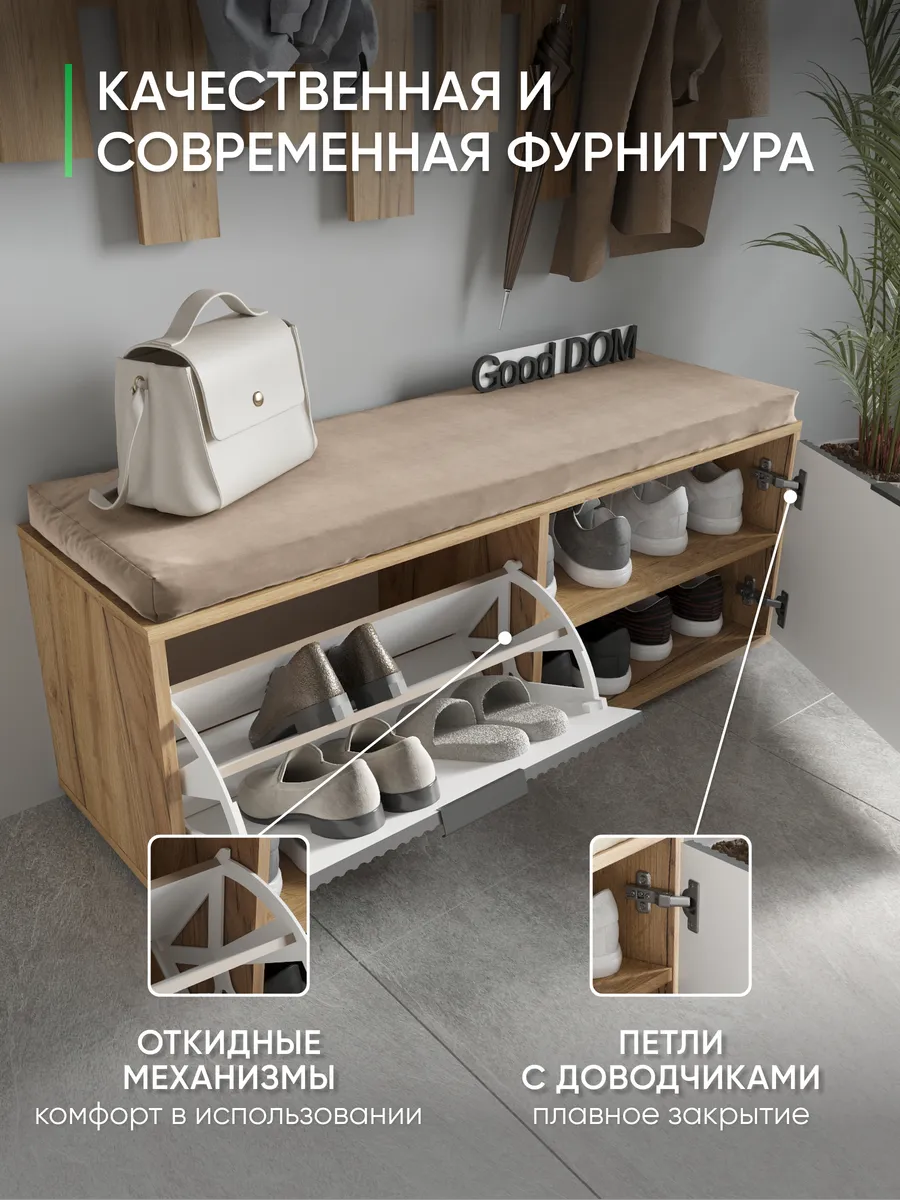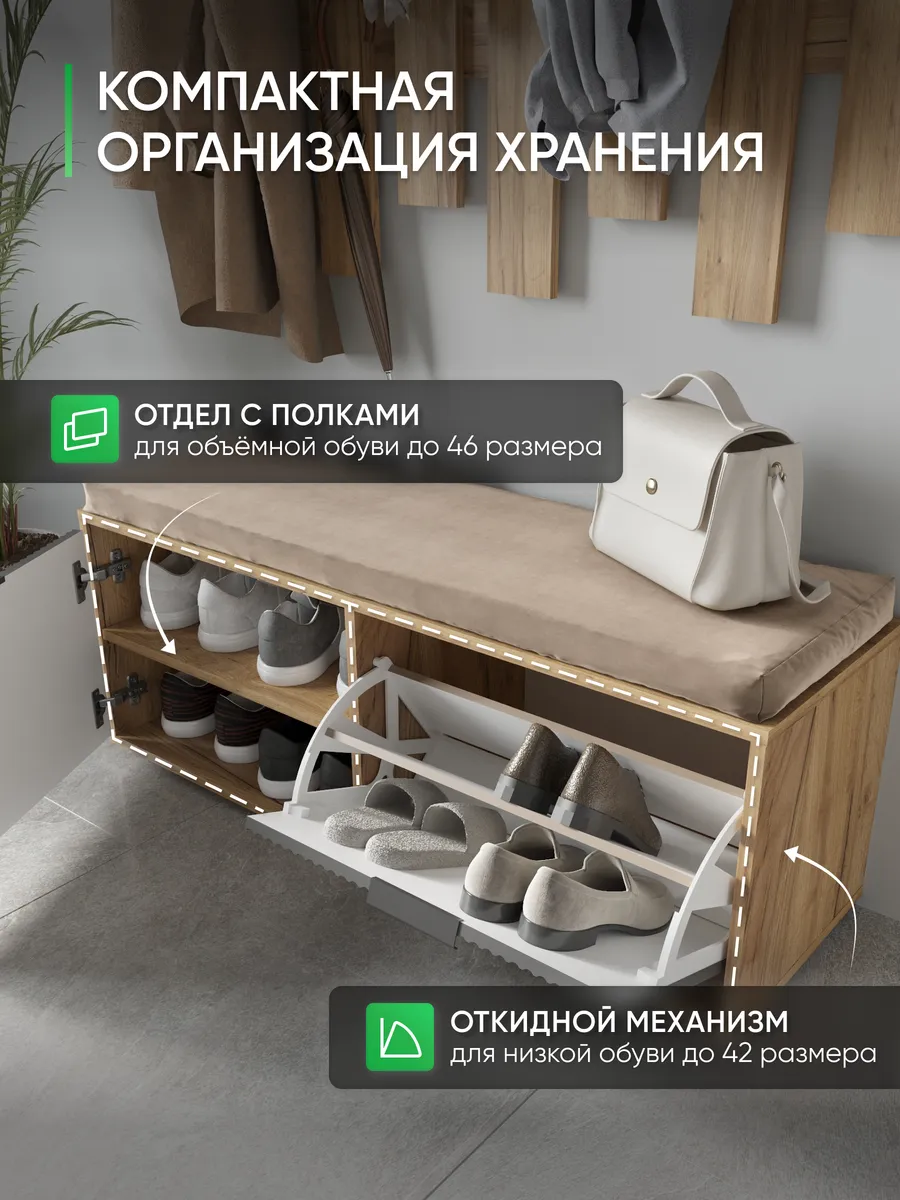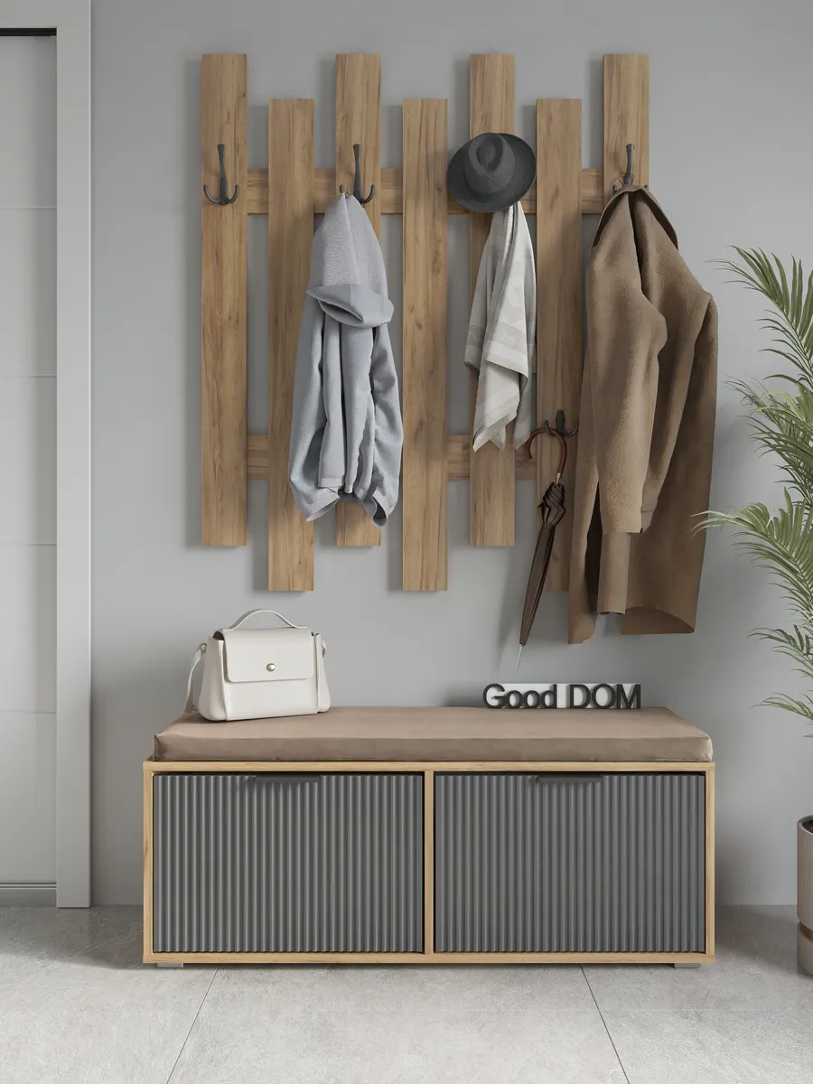 Напольная тумбочка из деревянного дуба станет практичным элементом мебели в коридорный уголок или прихожую. Широкий ящик и закрытая дверца обеспечивают удобное хранение одежды, обуви и других важных вещей, сохраняя комнату в порядке. Дополнительное сидение с мягкой сидушкой создает комфортный топчан для переобувания, превращая изделие в универсальный предмет интерьера. Угловой дизайн позволяет эффективно использовать пространство, идеально вписываясь в небольшие комнаты и балконные зоны.