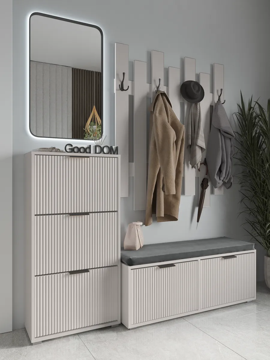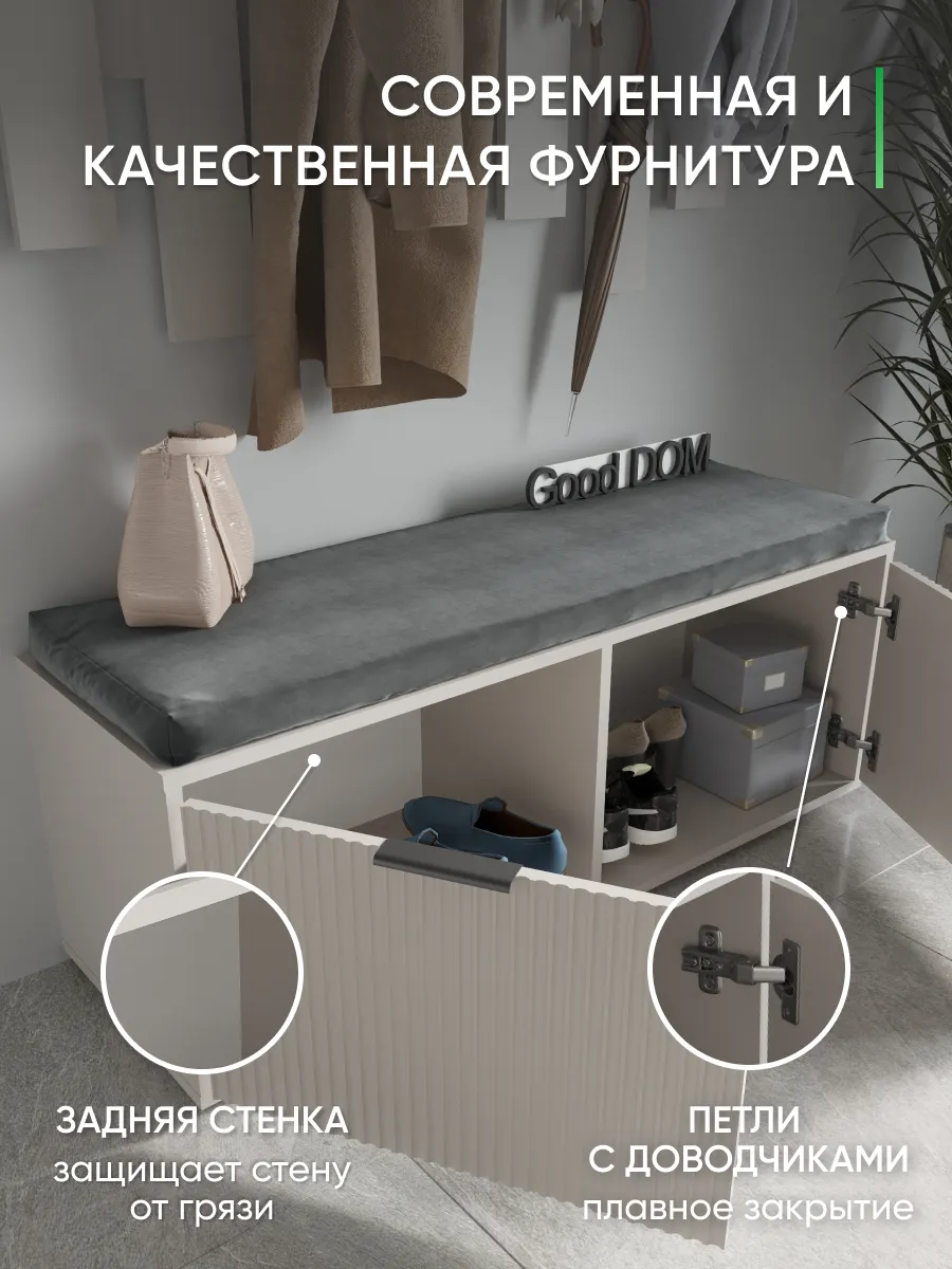 Тумба создана специально для организации порядка в прихожей и других комнатах дома. Деревянный корпус гармонично вписывается в современный стиль минимализм, лофт или классический интерьер. Мебельный аксессуар оснащен закрытым ящиком и дверцей, что позволяет удобно хранить обувь, одежду, постельный текстиль, белье и другие вещи. Широкий напольный формат делает изделие устойчивым, а ножка обеспечивает дополнительную прочность. Мягкое сиденье или сидушка создают комфорт при смене обуви, а также могут выполнять роль откидного элемента для хранения. Гардеробная функция реализована благодаря вместительности и возможности размещения аксессуаров, что особенно актуально для большой семьи или тех, кто ценит порядок. Угловой вариант подойдет для компактных помещений, таких как балкон, кухня или спальня. Бежевый цвет или оттенок слоновой кости легко сочетается с любым декором, создавая уют и подчеркивая мебельный стиль.