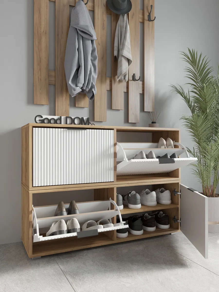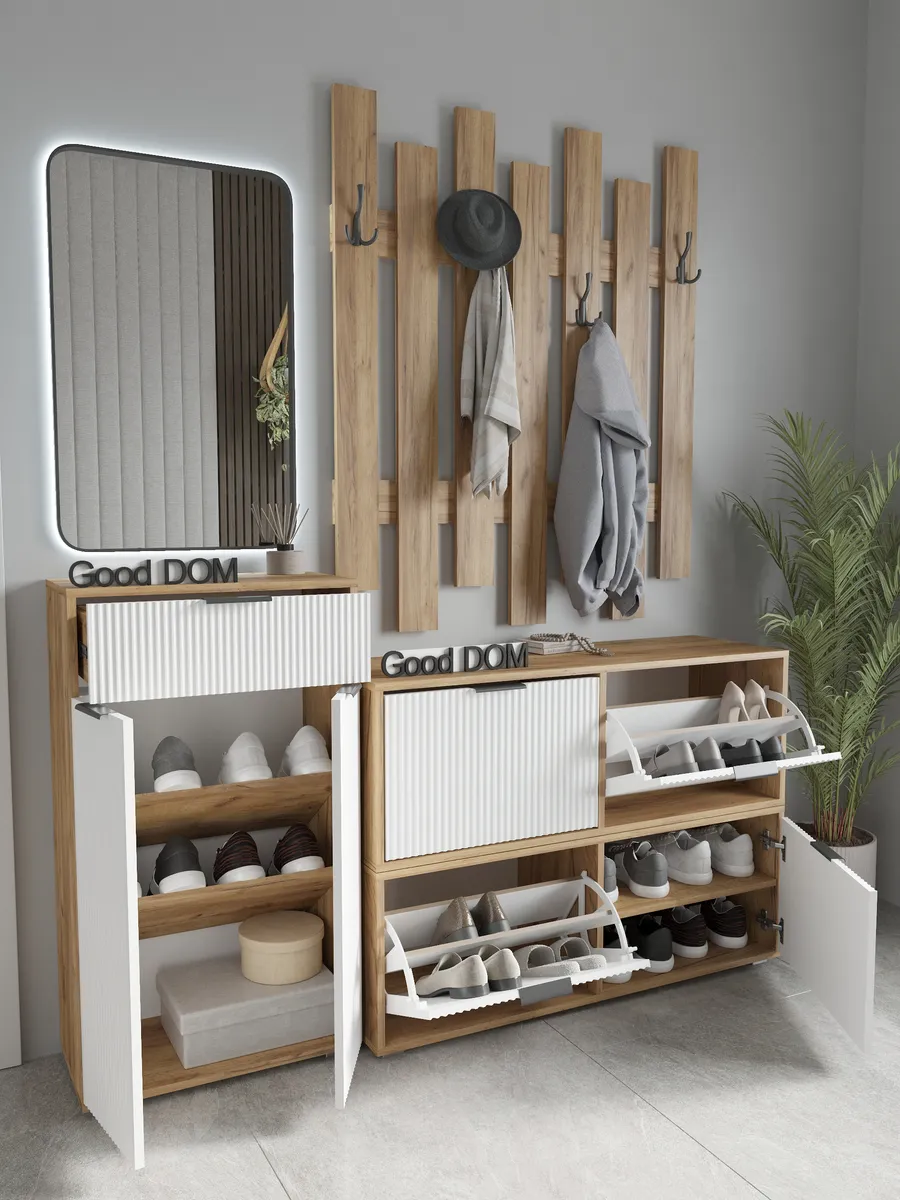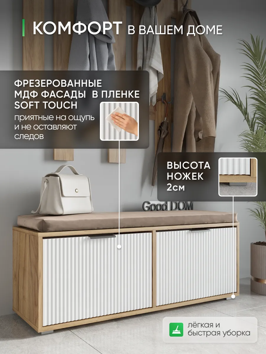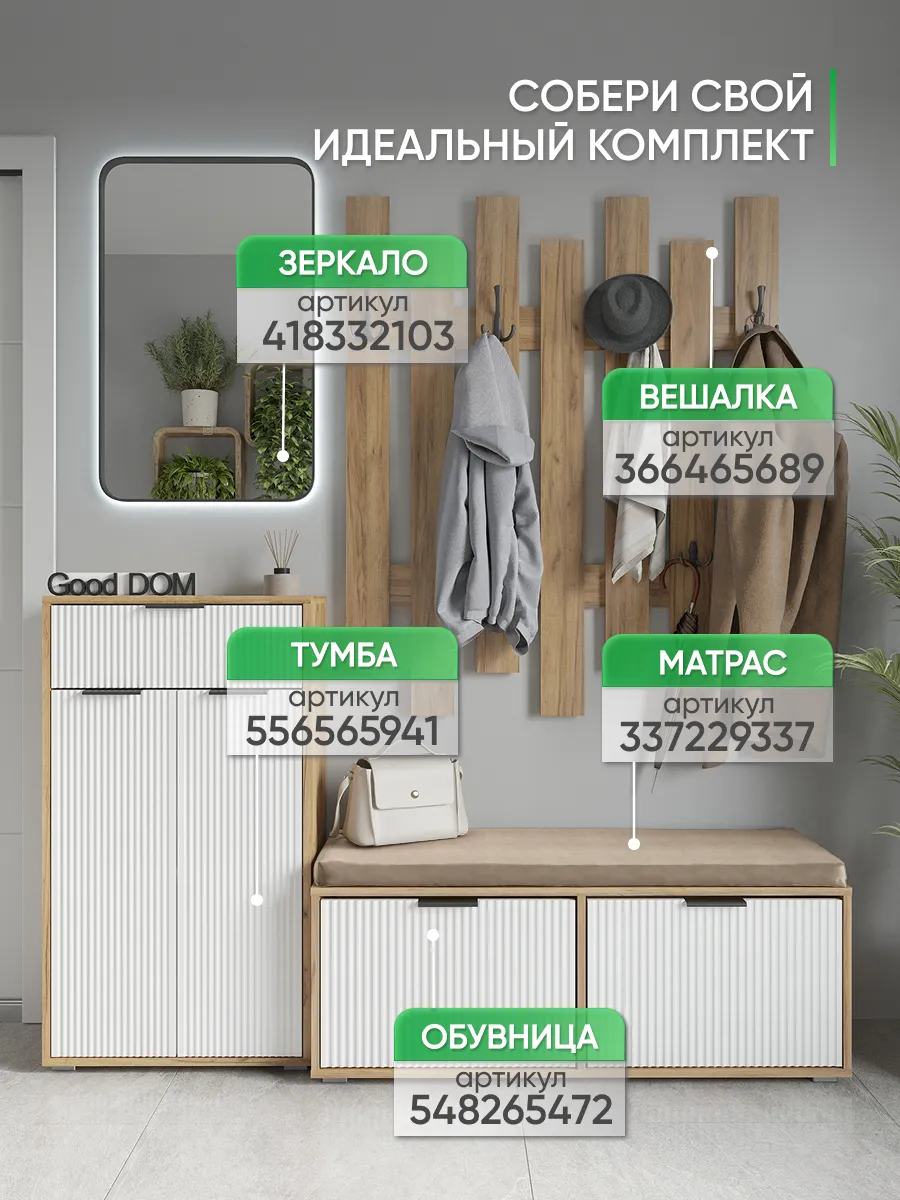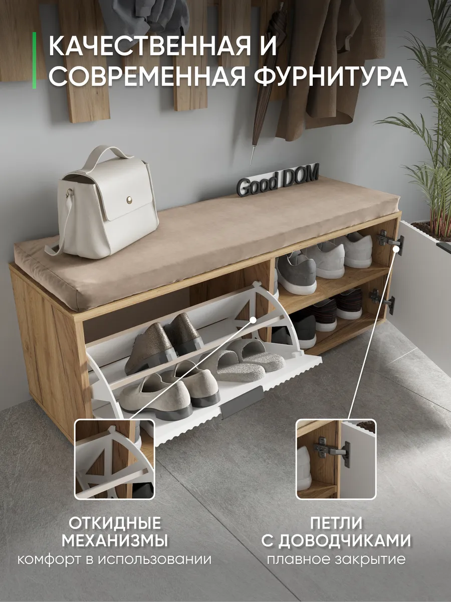 Мы постоянно работаем над качеством нашей продукции, поэтому улучшили упаковку - наша усиленная упаковка Вашу мебель при доставке от сломанных углов и сколов! В нашем ассортименте есть много интересных моделей мебели в гостиную или на кухню, а том числе и мебель в прихожую - обувницы, откидные столы, стеллажи, настенные полки, шкафы. Что позволяет удобно собрать комплект мебели от бренда Good дом, все в Дом, которая сочетается между собой. Для того, чтобы посмотреть весь наш ассортимент - просто нажмите на иконку логотипа.