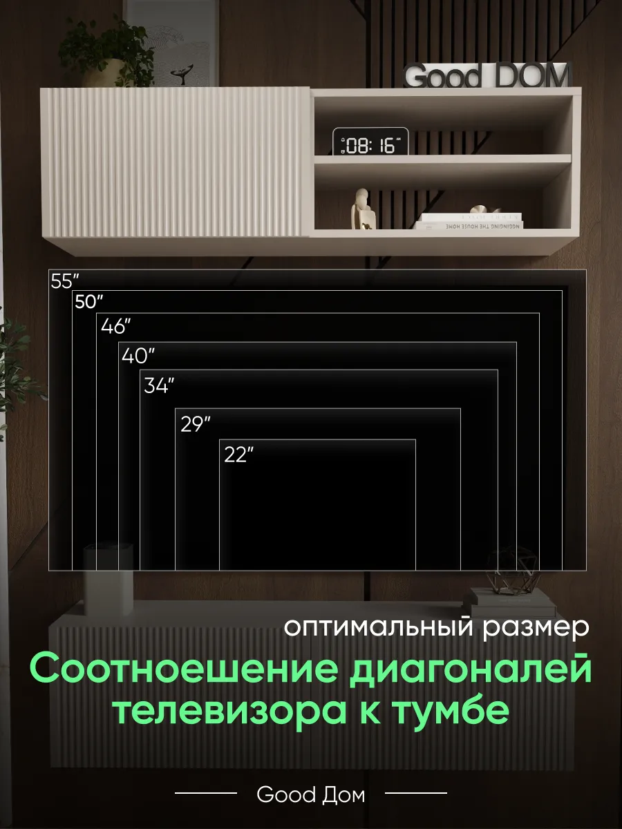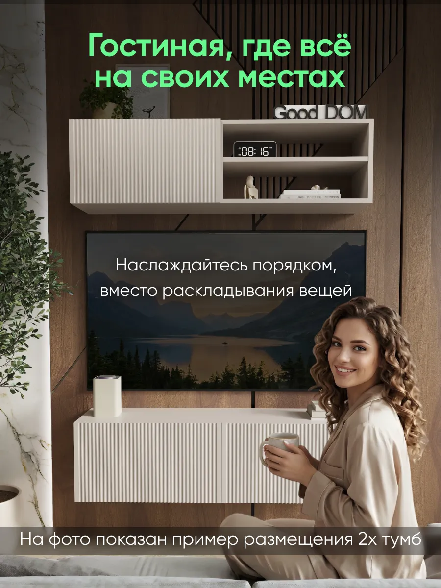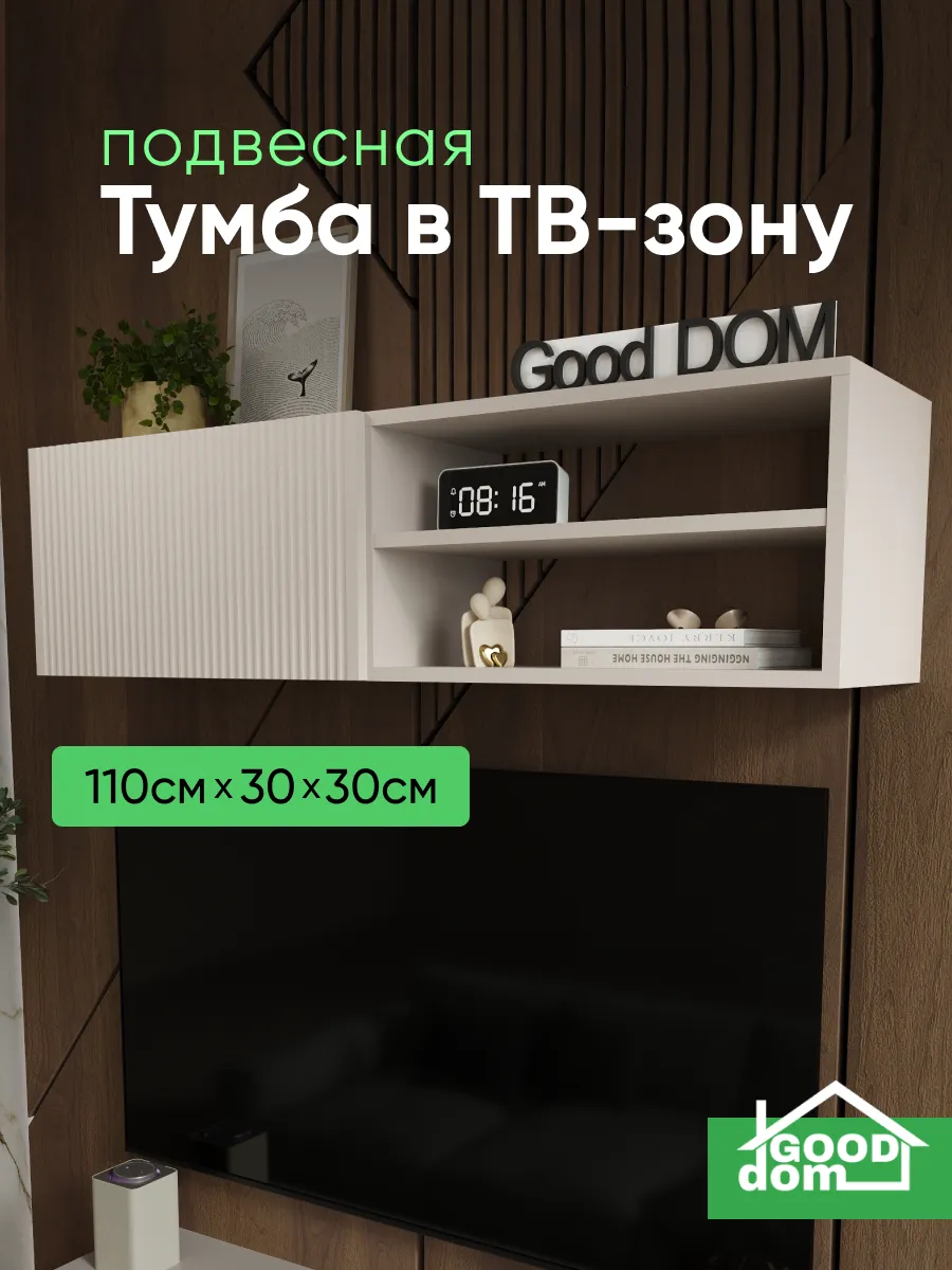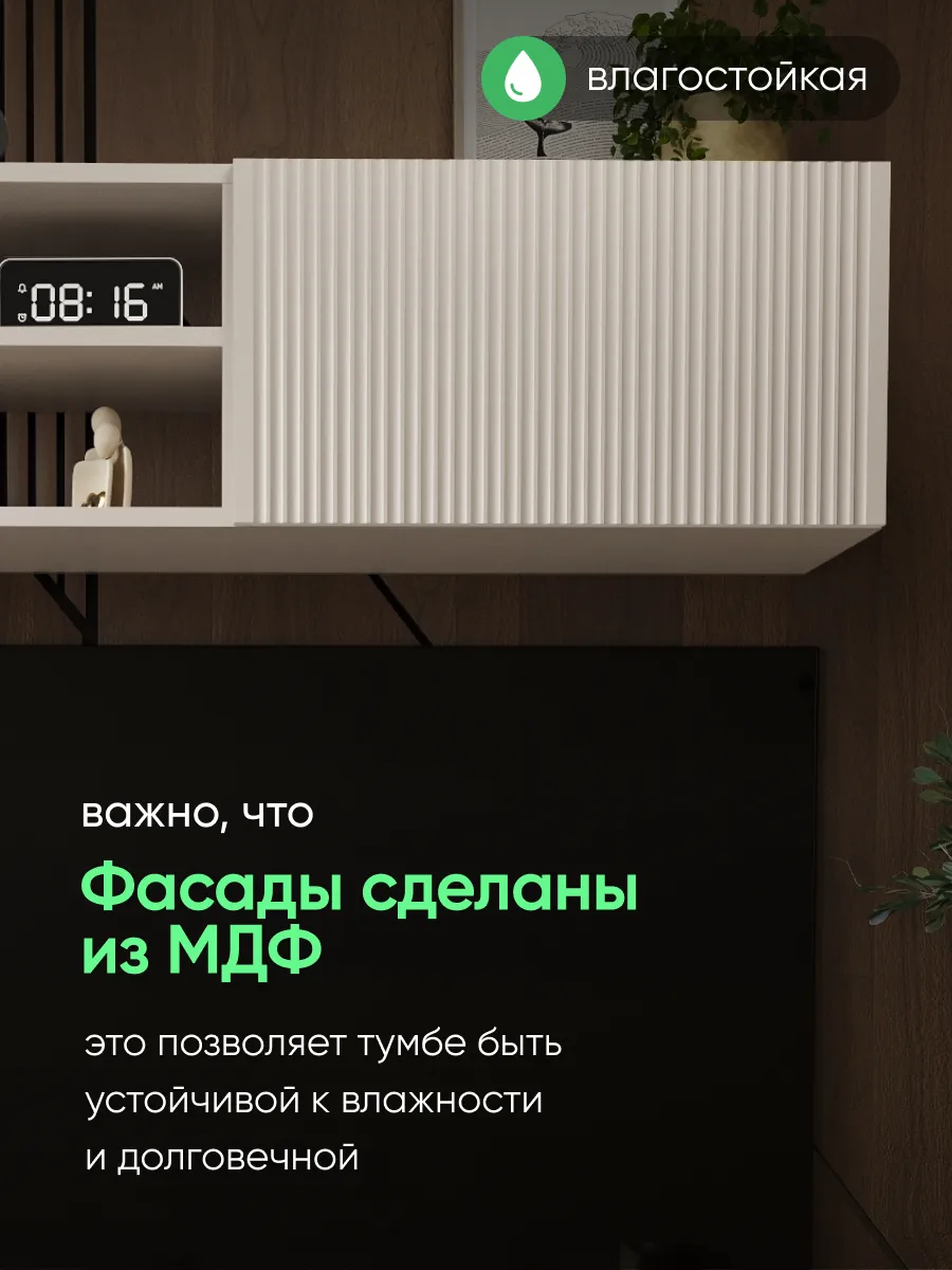 Подвесная тумба под телевизор с фрезерованным фасадом МДФ — стильное и функциональное решение для современного интерьера. Размер 1100×297×300 мм позволяет разместить тумбу над ТВ или в гостиной, спальне, кабинете или детской комнате.