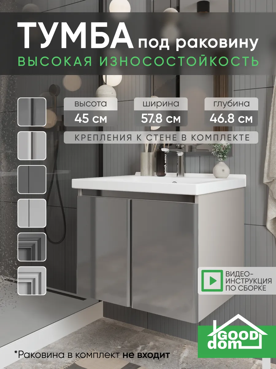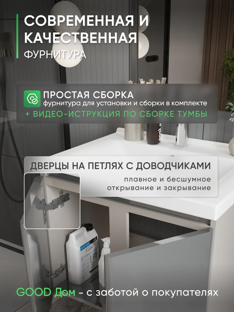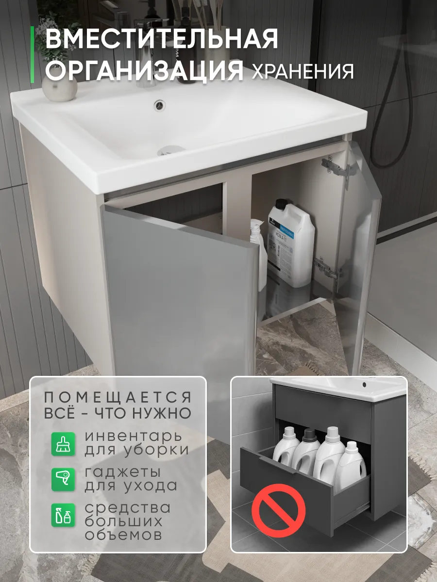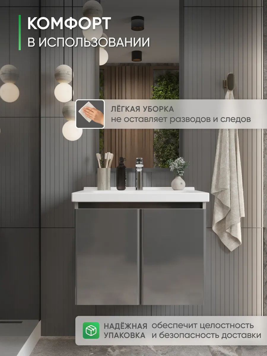 Тумба подойдёт для установки в любом типе ванной комнаты — от квартиры, загородного дома до коммерческих помещений. Это практичное и стильное решение, рассчитанное на длительное использование без лишних забот.