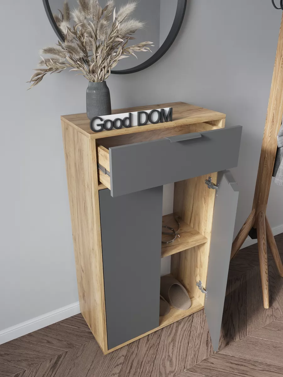 Тумба напольная в прихожую или гостиную. Оригинальная полка для обуви или других вещей впишется в любой дизайн интерьера квартиры или дома. В лофт стиле тумба подойдет для хранения детских вещей или как мебель на балкон или для хранения косметики в гардеробной. Обувной комод предназначен для хранения обуви, вещей, аксессуаров. Галошница в прихожую станет отличным выбором, поможет организовать пространство помещения. Не менее функциональным дополнением станет такая тумба в офисном помещении, в качестве полки для книг или бумаг, или тумба офисная для кабинета. Может служить органайзером для документов или органайзером для канцелярии. Обувной стеллаж - деревянная напольная, вместительная мебель. Тумба в прихожую оснащена верхним выдвижным ящиком для мелочей, которые всегда будут под рукой. Так же комод для детской послужит отличным местом для хранения игрушек и книг. Шкаф для хранения одежды и обуви дополнит Ваш комплект мебели на кухне или в гостиной. Данная деревянная мебель так же может выполнять функцию органайзера для документов в офисе или рабочем кабинете. Используйте тумбу-комод на Вашей даче, как незаменимый предмет для удобного хранения. Комод для вещей выполнит функцию туалетного столика для спальни, если над ним повесить красивое зеркало.