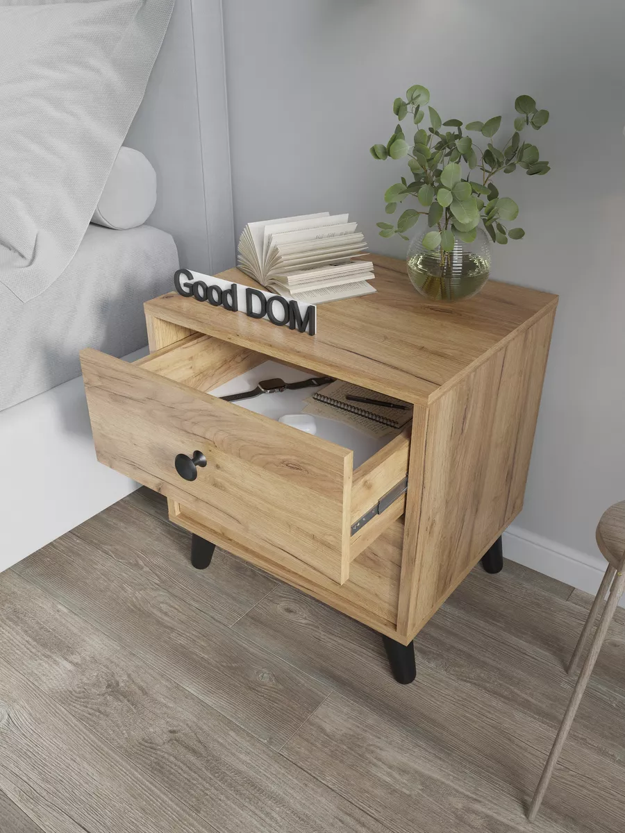 Тумба на ножках также может расположиться даже в гараже для небольших инструментов. Стильная тумба в офис дополнит интерьер приемной или кабинета. Ее можно использовать как подставку под принтер. Столик прикроватный для завтрака или кофе. Компактная тумбочка подойдет для хранения косметики и детских вещей. Современный дизайн тумбы - отличный выбор для тех, кто ценит минимализм и стиль лофт loft, а деревянные ножки и стильные ручки-кнопки в черном цвете помогут создать дизайн интерьера в стиле сканди. Можно с легкостью использовать ее как тумба под маленький телевизор ТВ или ноутбук, а так же как туалетный столик или макияжный, для девочки под зеркало. Подойдет любой квартире в гардеробную в виде приставной тумбочки или например подставка или полка для цветов, фотографий, телефона, книг или роутера.Маленький комод для детской поможет не растерять мелкие игрушки и любимые книги.