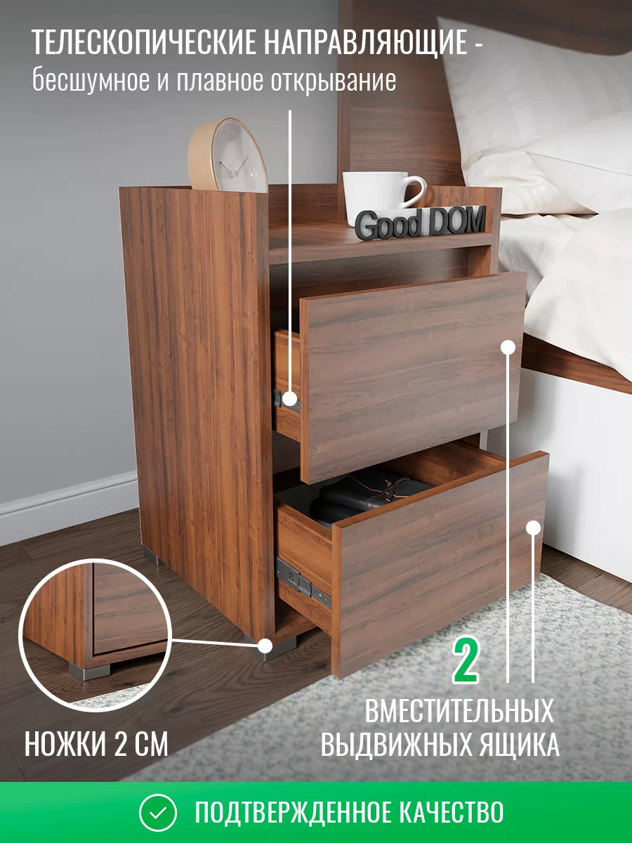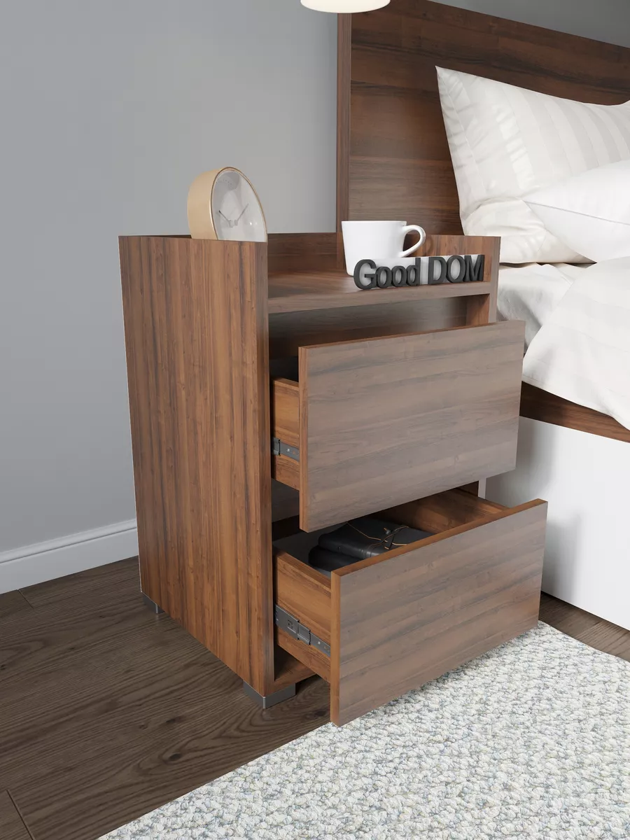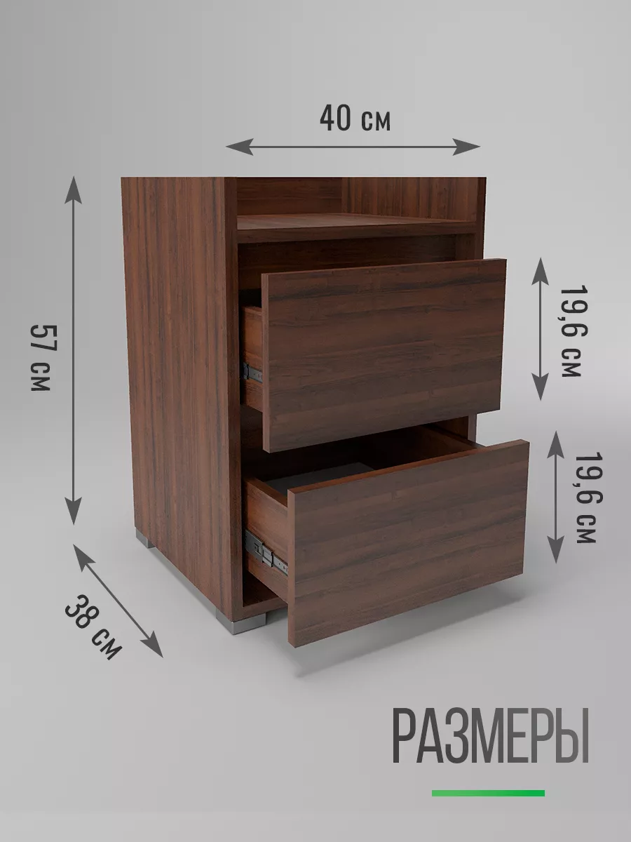 Тумба прикроватная в универсальном стиле, который точно подойдёт под ваш интерьер. Прикроватная тумбочка с выдвижными ящиками - это удобная организация хранения вещей в спальне. Возле кровати вы всегда сможете иметь под рукой вещи, которые вам необходимы: книги, зарядки, наушники, косметика. Два выдвижных ящика с телескопическими направляющими обеспечат бесшумное и плавное открывание и закрывание. Именно телескопические направляющие прослужат вам долгие годы. Тумбочка в спальню так же имеет ножки по четырем углам, что обеспечит устойчивость и исключит повреждение напольного покрытия. Так же на тумбе сверху есть полка, на которой вы с комфортом можете разместить светильник, декор, разместить ваши гаджеты. Функциональная прикроватная тумба ваш помощник в грамотном организации хранения в спальне. Так же тумбу можно использовать как офисная тумба, тумба в детской комнате, на балконе, на даче или в саду. Тумба с ящиками не съедает пространство и подойдет для узких коридоров как тумба в прихожую. Мини тумба благодаря ящикам, сможет заменить вам большую обувницу в малогабаритной квартире. Тумба на ножках также может расположиться даже в гараже для небольших инструментов. Стильная тумба в офис дополнит интерьер приемной или кабинета. Ее можно использовать как подставку под принтер. Столик прикроватный для завтрака или кофе. Компактная тумбочка подойдет для хранения косметики и детских вещей. Современный дизайн тумбы - отличный выбор для тех, кто ценит минимализм и стиль лофт loft. Можно с легкостью использовать ее как тумба под маленький телевизор ТВ или ноутбук, а так же туалетный столик. Маленький комод для детской поможет не растерять мелкие игрушки и любимые книги. Наша мебель выполнена из высококачественного ЛДСП, благодаря чему прослужит Вам не один год.