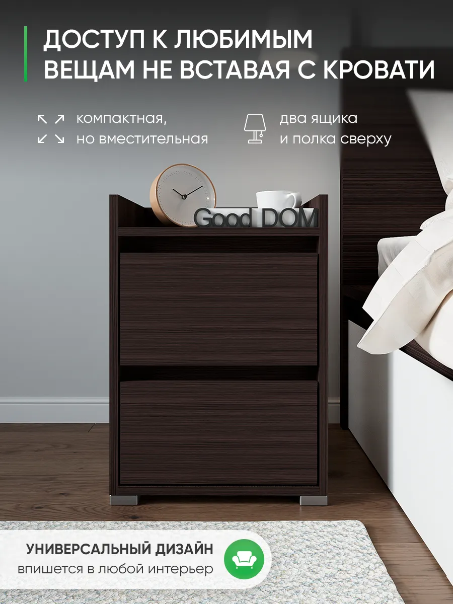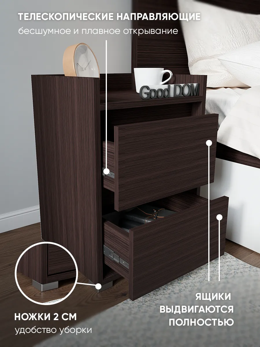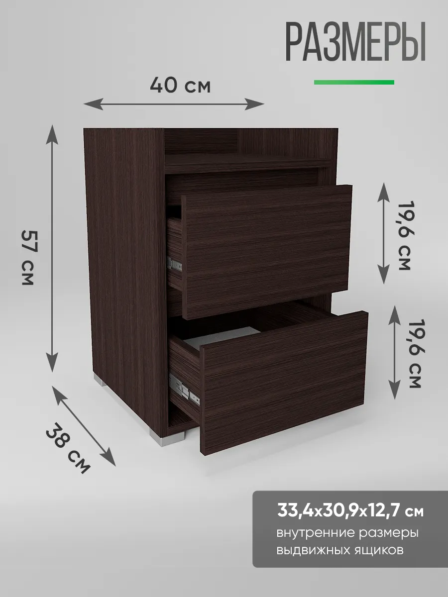 Тумба прикроватная в универсальном стиле, который точно подойдёт под ваш интерьер. Прикроватная тумбочка с выдвижными ящиками - это удобная организация хранения вещей в спальне. Возле кровати вы всегда сможете иметь под рукой вещи, которые вам необходимы: книги, зарядки, наушники, косметика. Два выдвижных ящика с телескопическими направляющими обеспечат бесшумное и плавное открывание и закрывание. Именно телескопические направляющие прослужат вам долгие годы. Тумбочка в спальню так же имеет ножки по четырем углам, что обеспечит устойчивость и исключит повреждение напольного покрытия. Так же на тумбе сверху есть полка, на которой вы с комфортом можете разместить светильник, декор, разместить ваши гаджеты. Функциональная прикроватная тумба ваш помощник в грамотном организации хранения в спальне. Так же тумбу можно использовать как офисная тумба, тумба в детской комнате, на балконе, на даче или в саду. Тумба с ящиками не съедает пространство и подойдет для узких коридоров как тумба в прихожую. Мини тумба благодаря ящикам, сможет заменить вам большую обувницу в малогабаритной квартире. Тумба на ножках также может расположиться даже в гараже для небольших инструментов. Стильная тумба в офис дополнит интерьер приемной или кабинета. Ее можно использовать как подставку под принтер. Столик прикроватный для завтрака или кофе. Компактная тумбочка подойдет для хранения косметики и детских вещей. Современный дизайн тумбы - отличный выбор для тех, кто ценит минимализм и стиль лофт loft. Можно с легкостью использовать ее как тумба под маленький телевизор ТВ или ноутбук, а так же туалетный столик. Маленький комод для детской поможет не растерять мелкие игрушки и любимые книги. Наша мебель выполнена из высококачественного ЛДСП, благодаря чему прослужит Вам не один год.