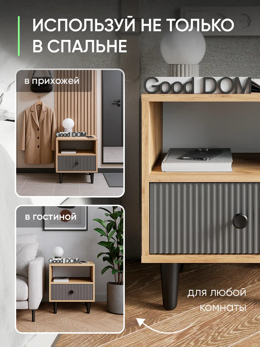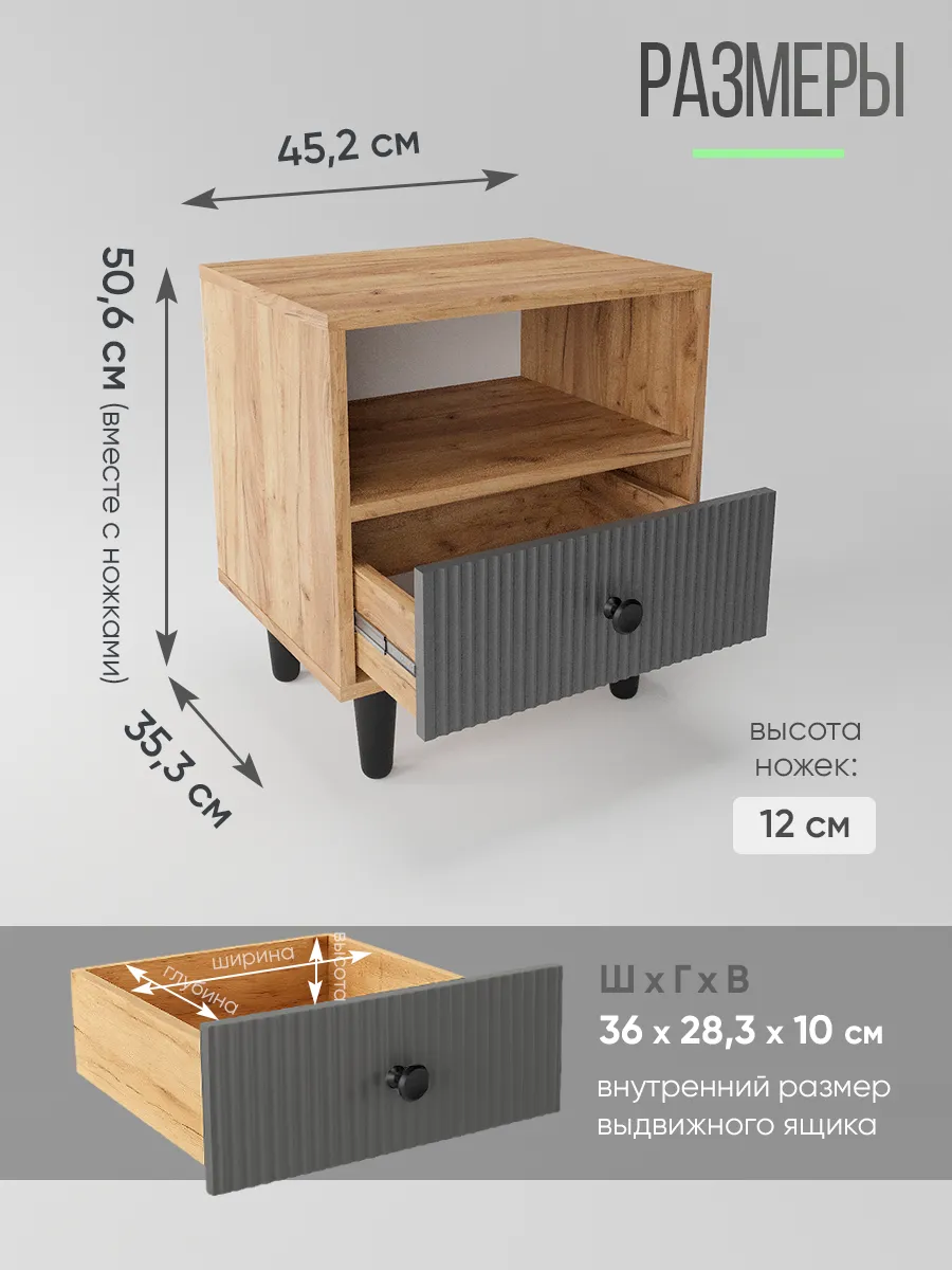 Тумба на ножках также может расположиться даже в гараже для небольших инструментов. Стильная тумба в офис дополнит интерьер приемной или кабинета. Ее можно использовать как подставку под принтер. Столик прикроватный для завтрака или кофе. Компактная тумбочка подойдет для хранения косметики и детских вещей. Современный дизайн тумбы - отличный выбор для тех, кто ценит минимализм и стиль лофт loft, а деревянные ножки и стильная ручка-кнопка в черном цвете поможет создать дизайн интерьера в стиле сканди. Можно с легкостью использовать ее как тумба под маленький телевизор ТВ или ноутбук, а так же как туалетный столик или макияжный, для девочки под зеркало. Подойдет любой квартире в гардеробную в виде приставной тумбочки или например подставка или полка для цветов, фотографий, телефона, книг или роутера.Маленький комод для детской поможет не растерять мелкие игрушки и любимые книги.