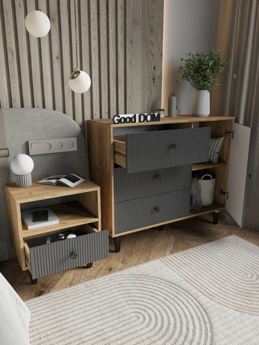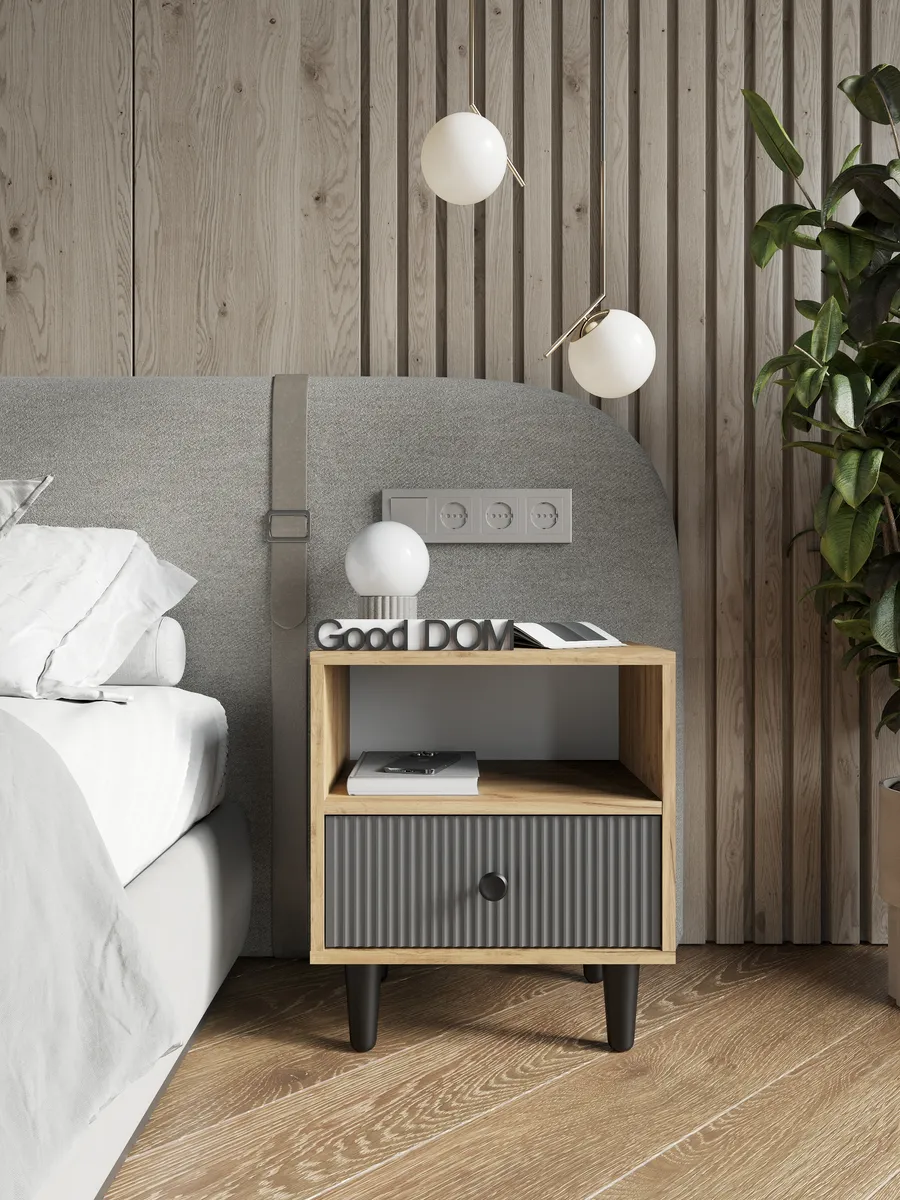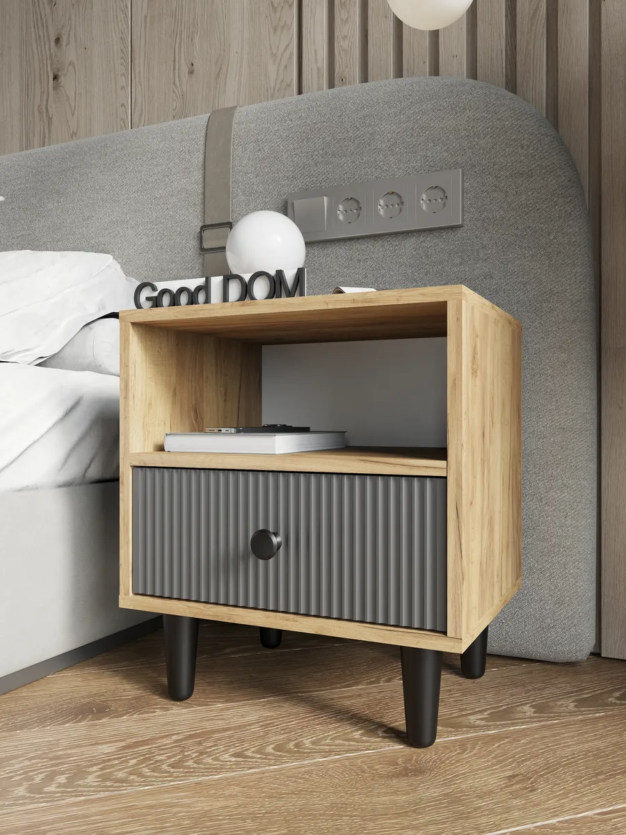 Тумба прикроватная напольная - это идеальное решение для небольшой комнаты. Прикроватная тумбочка в современном дизайне на стильных деревянных ножках и черной ручкой-кнопкой. Тумбочка напольная поможет грамонтно организовать пространство у кровати и разместить необходимые вам вещи: книги, телефон или планшет, зарядные устройства и другие мелочи. Тумба с ящиками не съедает пространство и подойдет так же для узких коридоров как тумба в прихожую. Тумбочка напольная также может служить как столик для напитков, а в детской комнате может использоваться как консольный столик. Тумбочка в прихожую, благодаря ящикам, сможет заменить вам большую обувницу в малогабаритной квартире.