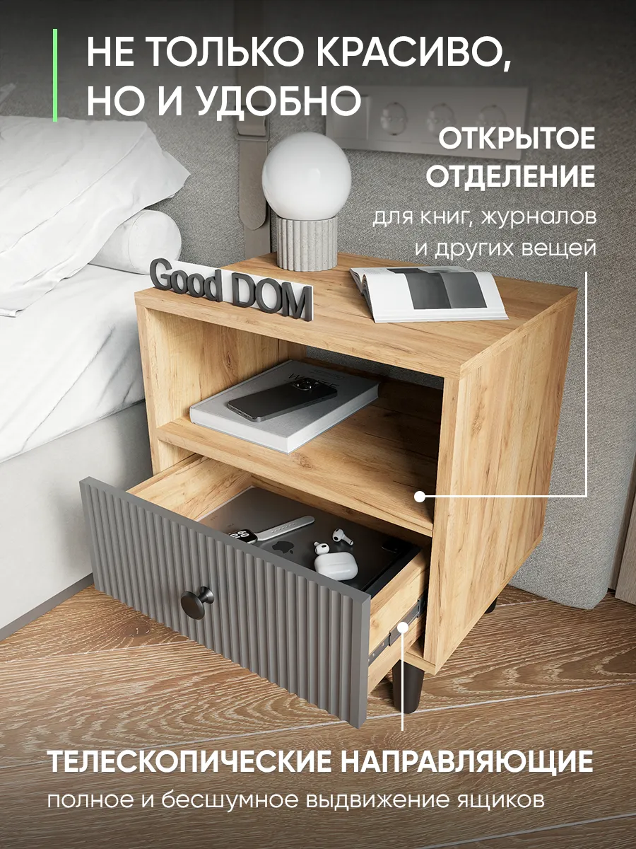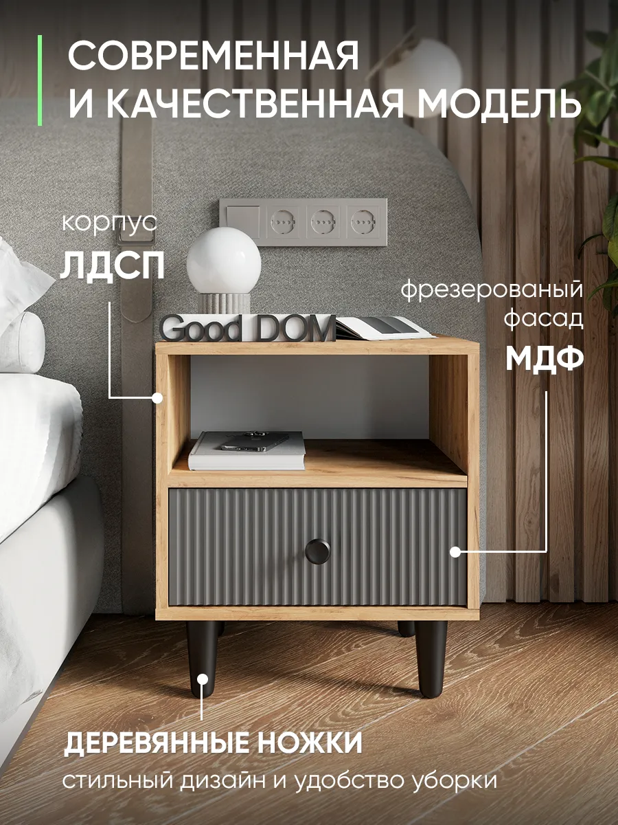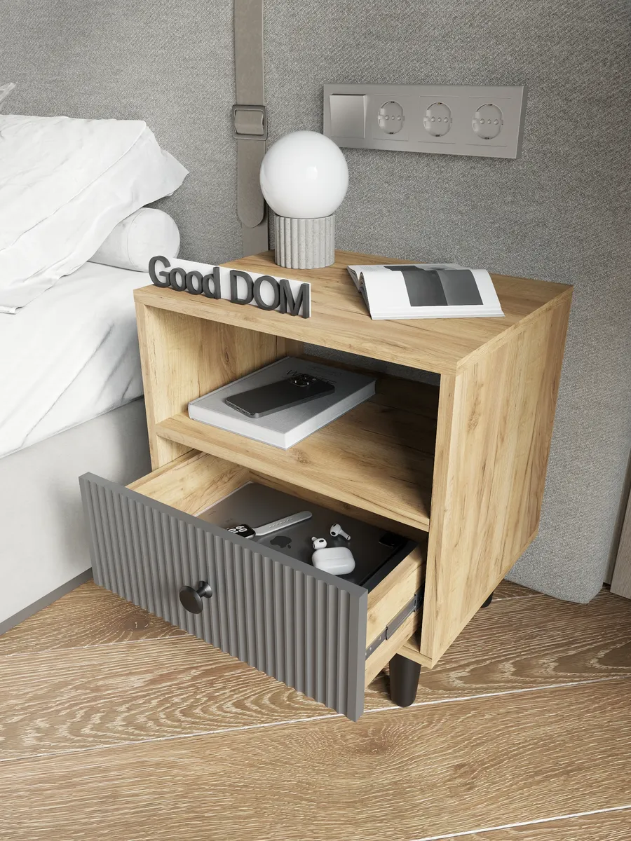 Тумба прикроватная напольная - это идеальное решение для небольшой комнаты. Прикроватная тумбочка в современном дизайне на стильных деревянных ножках и черной ручкой-кнопкой. Тумбочка напольная поможет грамонтно организовать пространство у кровати и разместить необходимые вам вещи: книги, телефон или планшет, зарядные устройства и другие мелочи. Тумба с ящиками не съедает пространство и подойдет так же для узких коридоров как тумба в прихожую. Тумбочка напольная также может служить как столик для напитков, а в детской комнате может использоваться как консольный столик. Тумбочка в прихожую, благодаря ящикам, сможет заменить вам большую обувницу в малогабаритной квартире.
