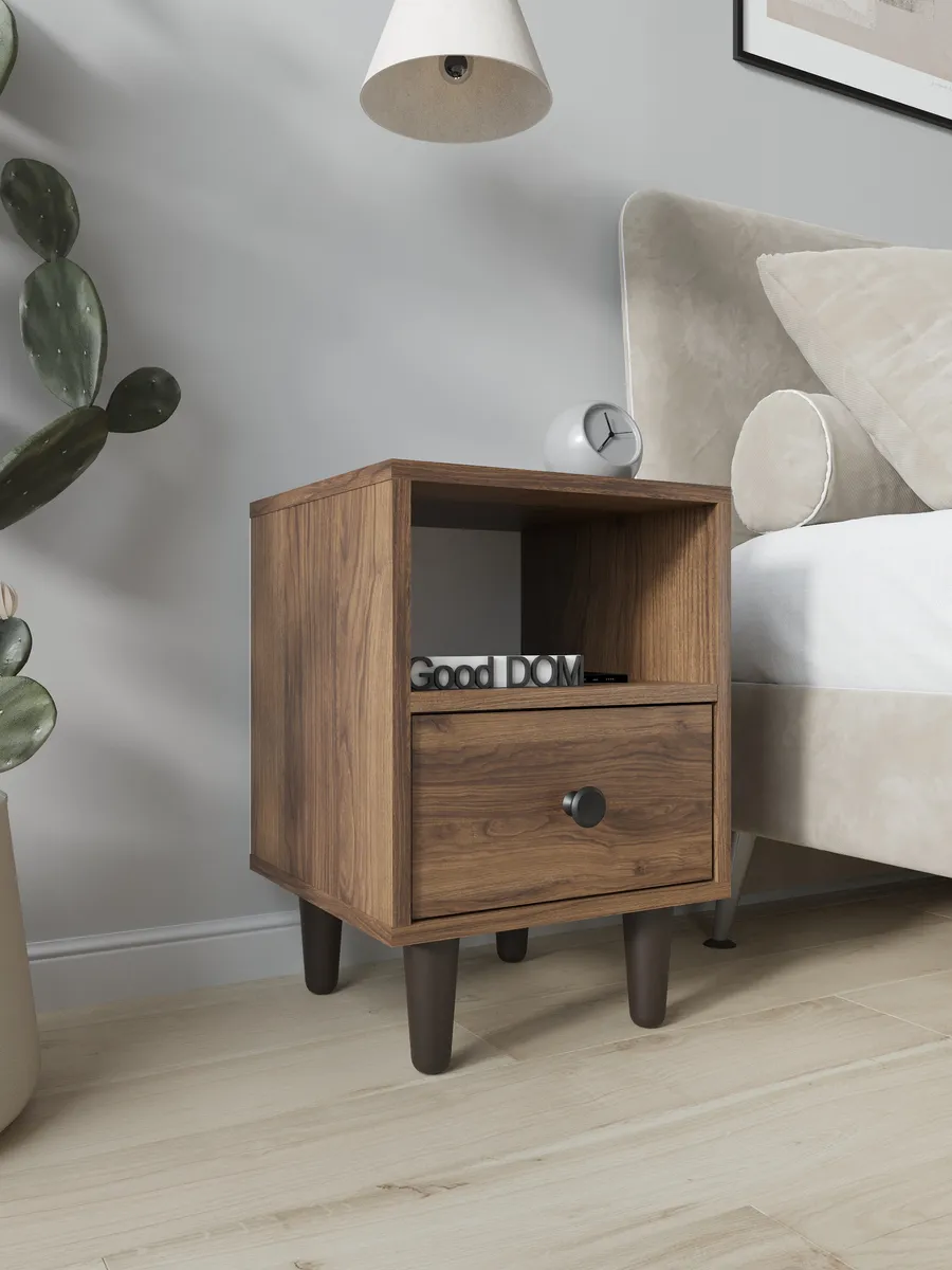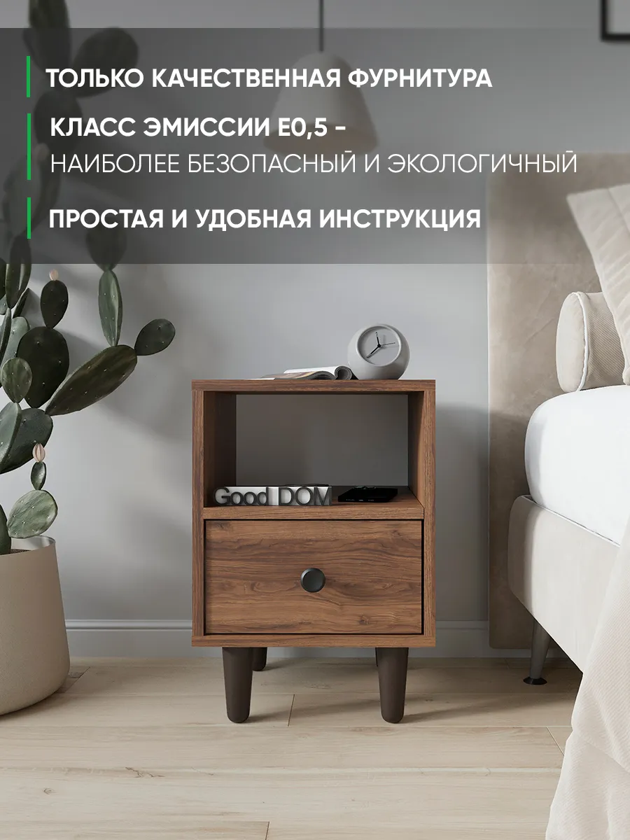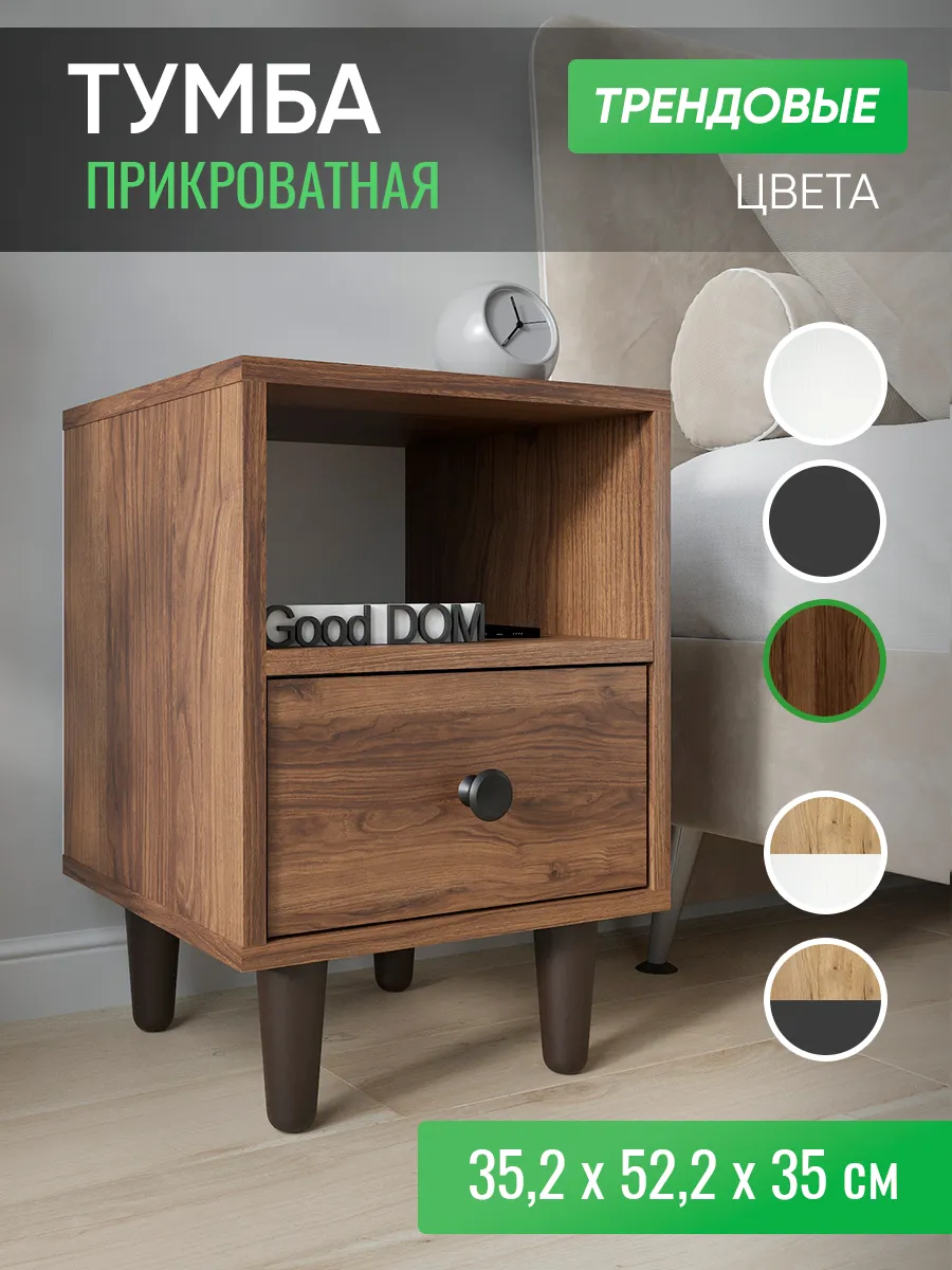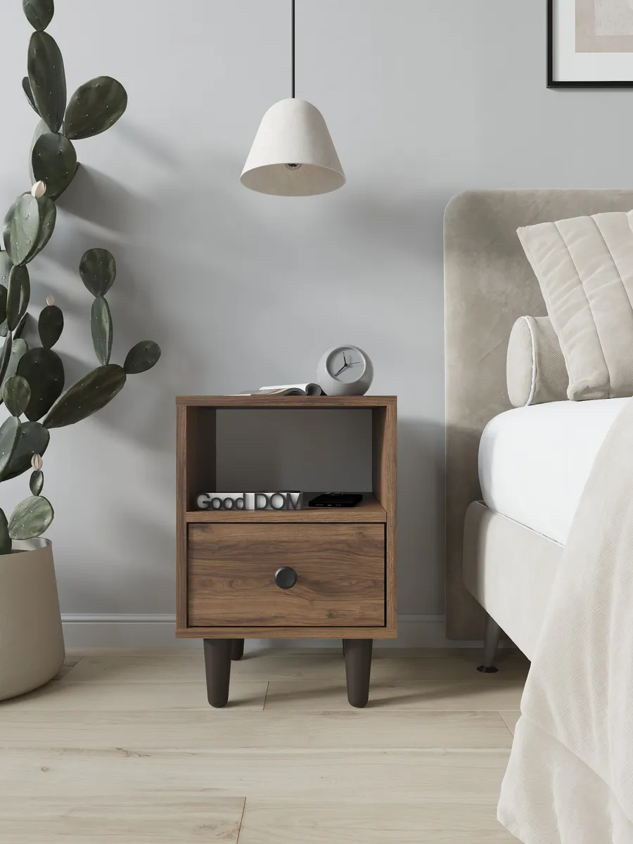 Тумба прикроватная напольная - это идеальное решение для небольшой комнаты. Прикроватная тумбочка в современном дизайне на стильных деревянных ножках и черной ручкой-кнопкой. Тумбочка напольная поможет грамонтно организовать пространство у кровати и разместить необходимые вам вещи: книги, телефон или планшет, зарядные устройства и другие мелочи. Тумба с ящиками не съедает пространство и подойдет так же для узких коридоров как тумба в прихожую. Тумбочка напольная также может служить как столик для напитков, а в детской комнате может использоваться как консольный столик. Тумбочка в прихожую, благодаря ящикам, сможет заменить вам большую обувницу в малогабаритной квартире.