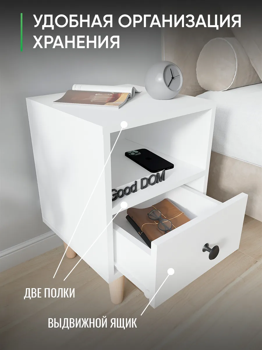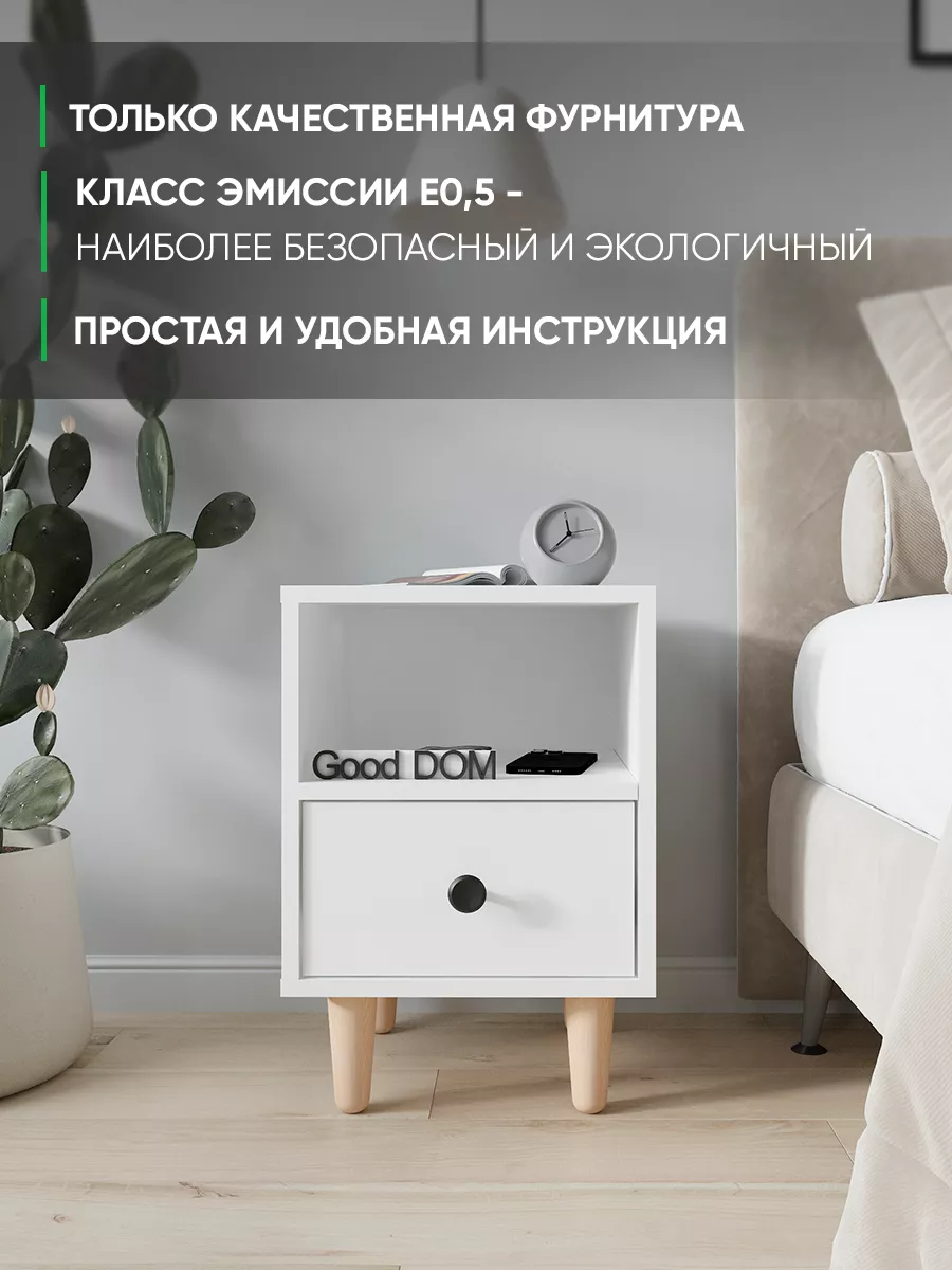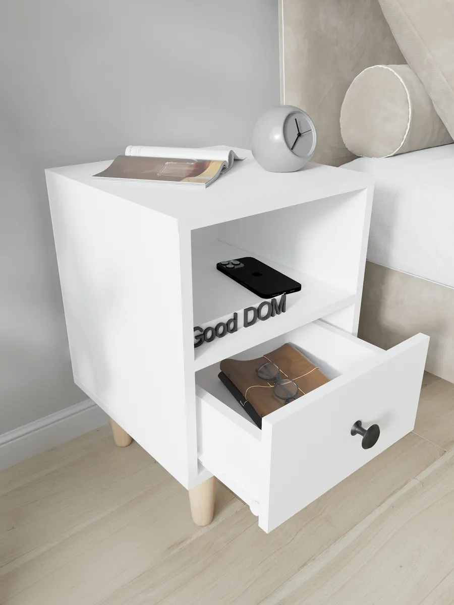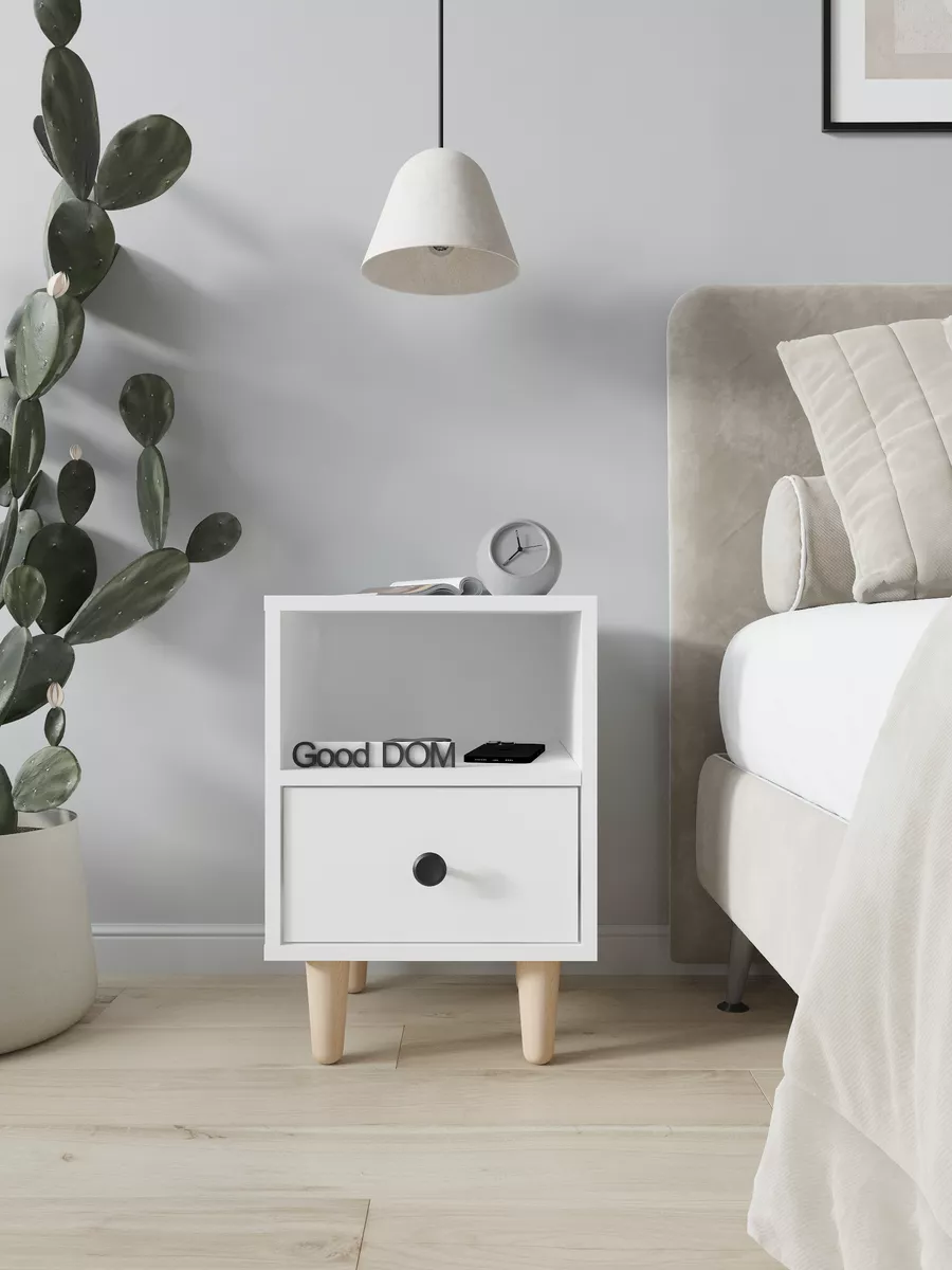 Тумба на ножках также может расположиться даже в гараже для небольших инструментов. Стильная тумба в офис дополнит интерьер приемной или кабинета. Ее можно использовать как подставку под принтер. Столик прикроватный для завтрака или кофе. Компактная тумбочка подойдет для хранения косметики и детских вещей. Современный дизайн тумбы - отличный выбор для тех, кто ценит минимализм и стиль лофт loft, а деревянные ножки и стильная ручка-кнопка в черном цвете поможет создать дизайн интерьера в стиле сканди. Можно с легкостью использовать ее как тумба под маленький телевизор ТВ или ноутбук, а так же как туалетный столик или макияжный, для девочки под зеркало. Подойдет любой квартире в гардеробную в виде приставной тумбочки или например подставка или полка для цветов, фотографий, телефона, книг или роутера.Маленький комод для детской поможет не растерять мелкие игрушки и любимые книги.