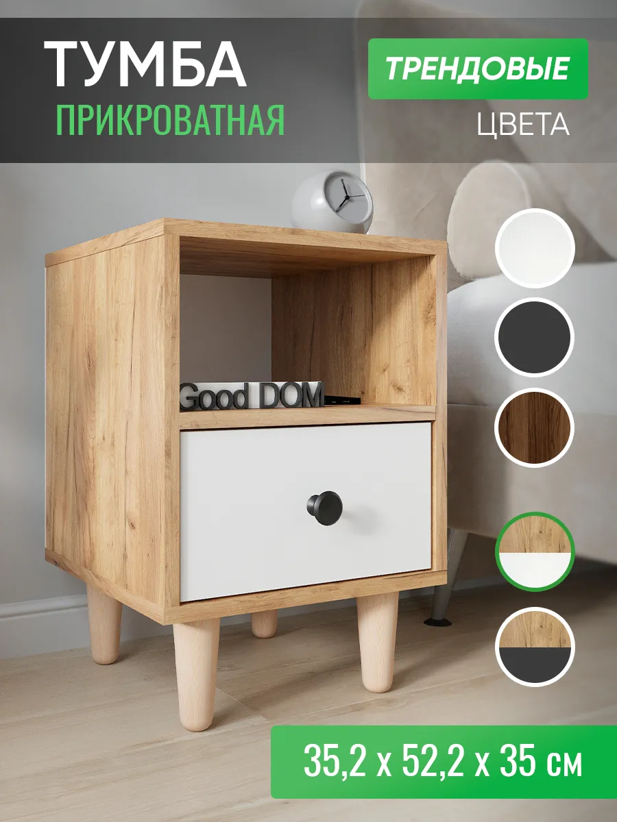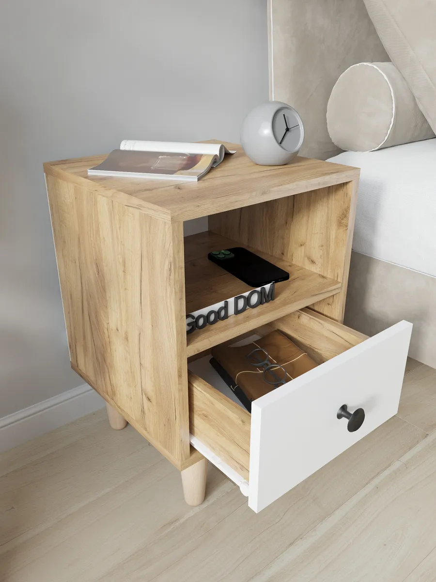 Тумба прикроватная напольная - это идеальное решение для небольшой комнаты. Прикроватная тумбочка в современном дизайне на стильных деревянных ножках и черной ручкой-кнопкой. Тумбочка напольная поможет грамонтно организовать пространство у кровати и разместить необходимые вам вещи: книги, телефон или планшет, зарядные устройства и другие мелочи. Тумба с ящиками не съедает пространство и подойдет так же для узких коридоров как тумба в прихожую. Тумбочка напольная также может служить как столик для напитков, а в детской комнате может использоваться как консольный столик. Тумбочка в прихожую, благодаря ящикам, сможет заменить вам большую обувницу в малогабаритной квартире.