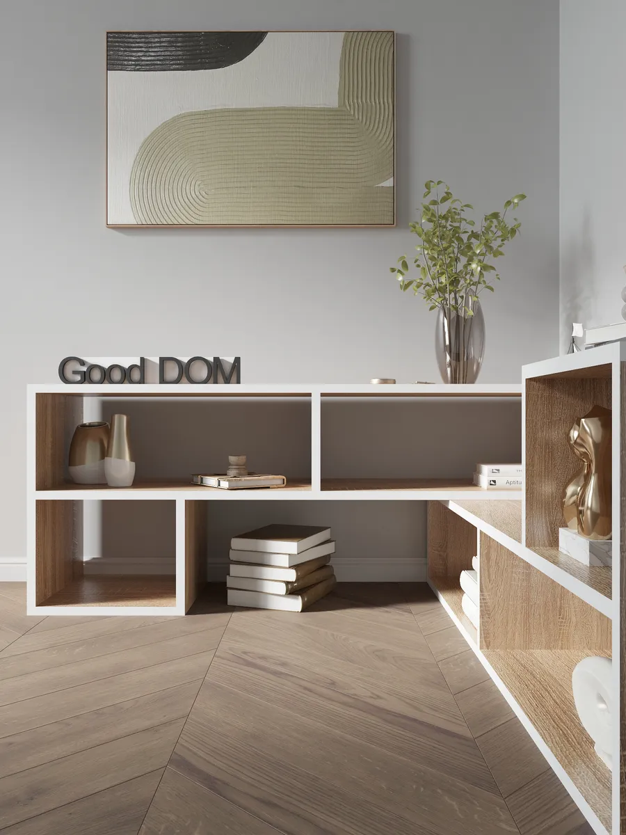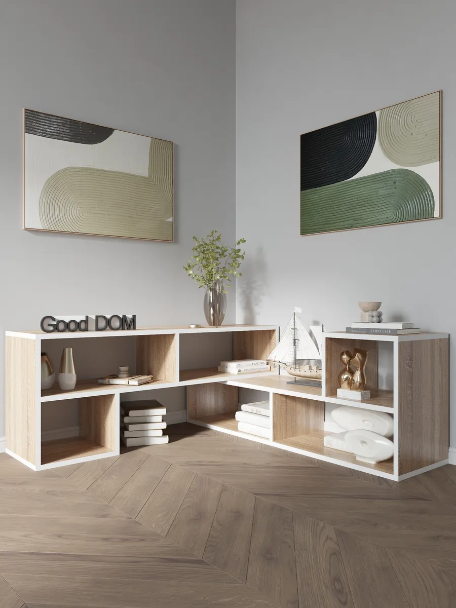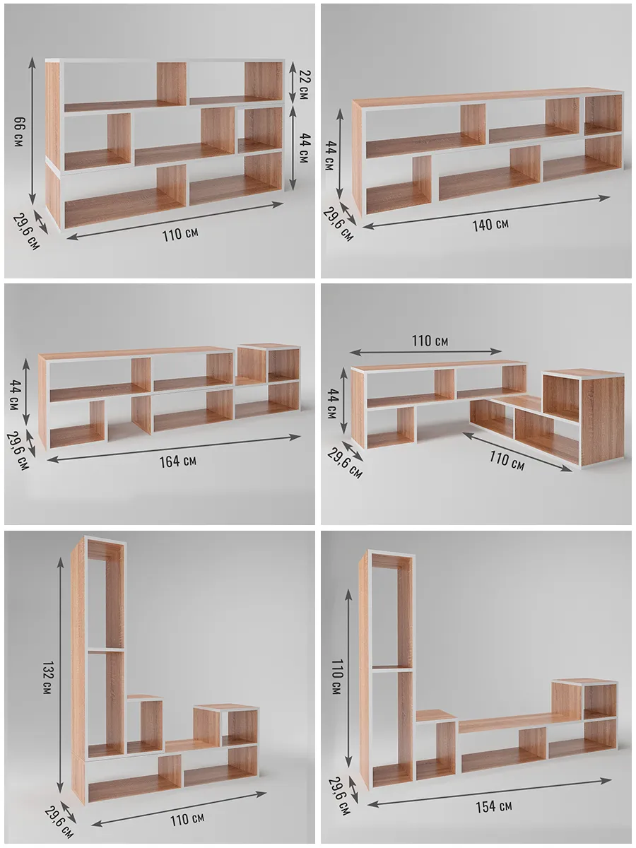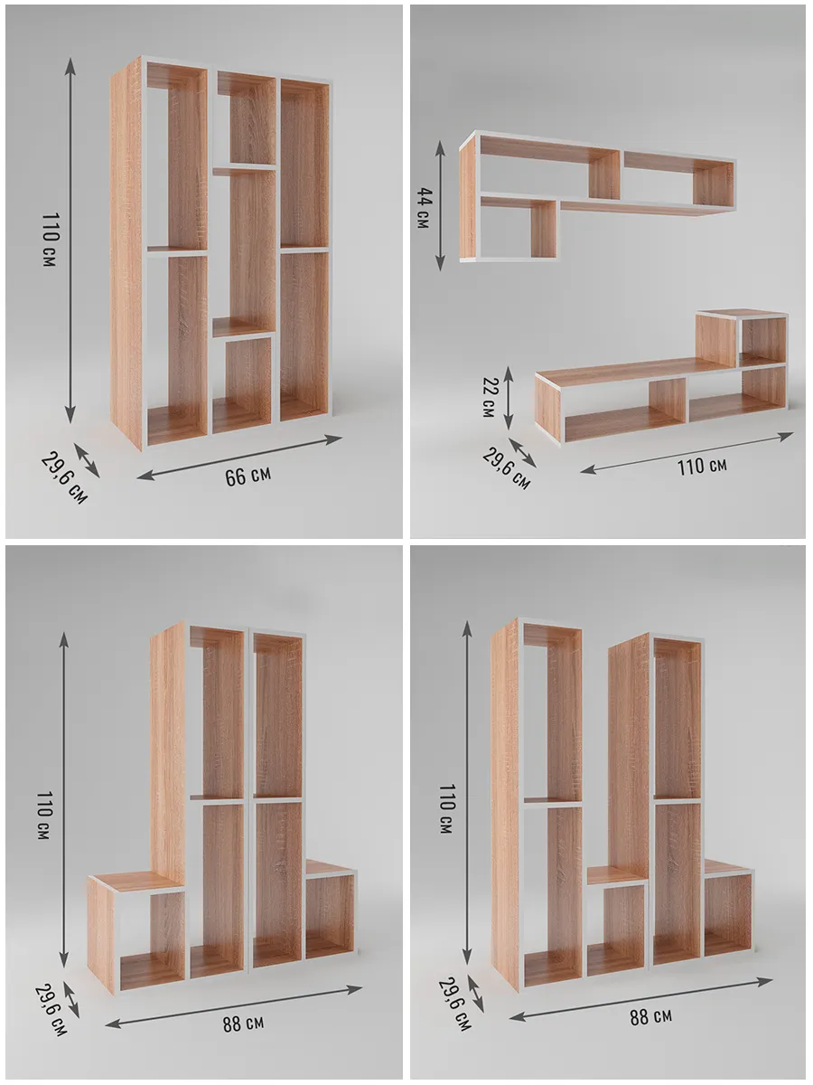 Тумба «Хамелеон» представляет собой тумбу-трансформер, которая по вашему желанию может быть тумбой, стеллажом, полкой напольной или настенной! 10 вариантов сборки позволяют разместить тумбу именно так, как нужно вам. Универсальная напольная полка может быть расположена в любой комнате. В гостиной на тумбе можно расположить гаджеты, книги, растения и цветы, предметы декора. Есть вариант расположения как тумба под тв. В тумбе под телевизор можно расположить все зарядки, провода, пульты управления и прочие нужные аксессуары к ТВ. Так же у стеллажа есть вариант углового размещения. Стеллаж компактно вписывается как полка в угол, но одновременно позволяет функционально использовать пространство. Кроме этого, есть вариант размещения вертикального стелажа, который позволит хранить высокие предметы или книги стопкой довольно компактно, но в то же время вместительно. В детской стеллаж удобно вместит множество игрушек, книг, учебников и тетрадей. Полку напольную можно расположить и в прихожей, вместо громоздкого шкафа-купе или стенки. Открытые полки стеллажа позволяют создать воздушный и необычный образ, не заставляя комнату закрытыми шкафами, съедающими пространство. Универсальная тумба-трансформер выгодно дополнит ваш интерьер, а главное поможет грамотно организовать систему хранения. Выбери свой вариант размещения!