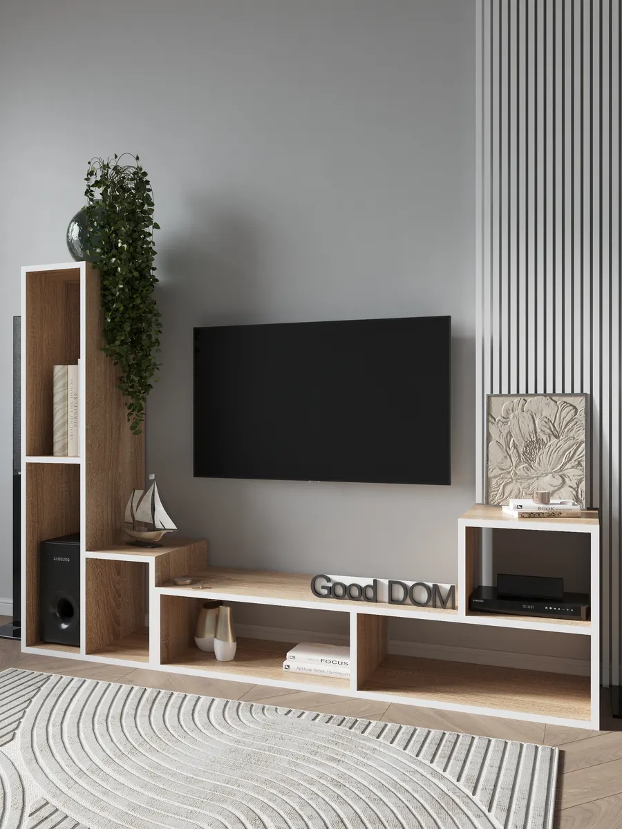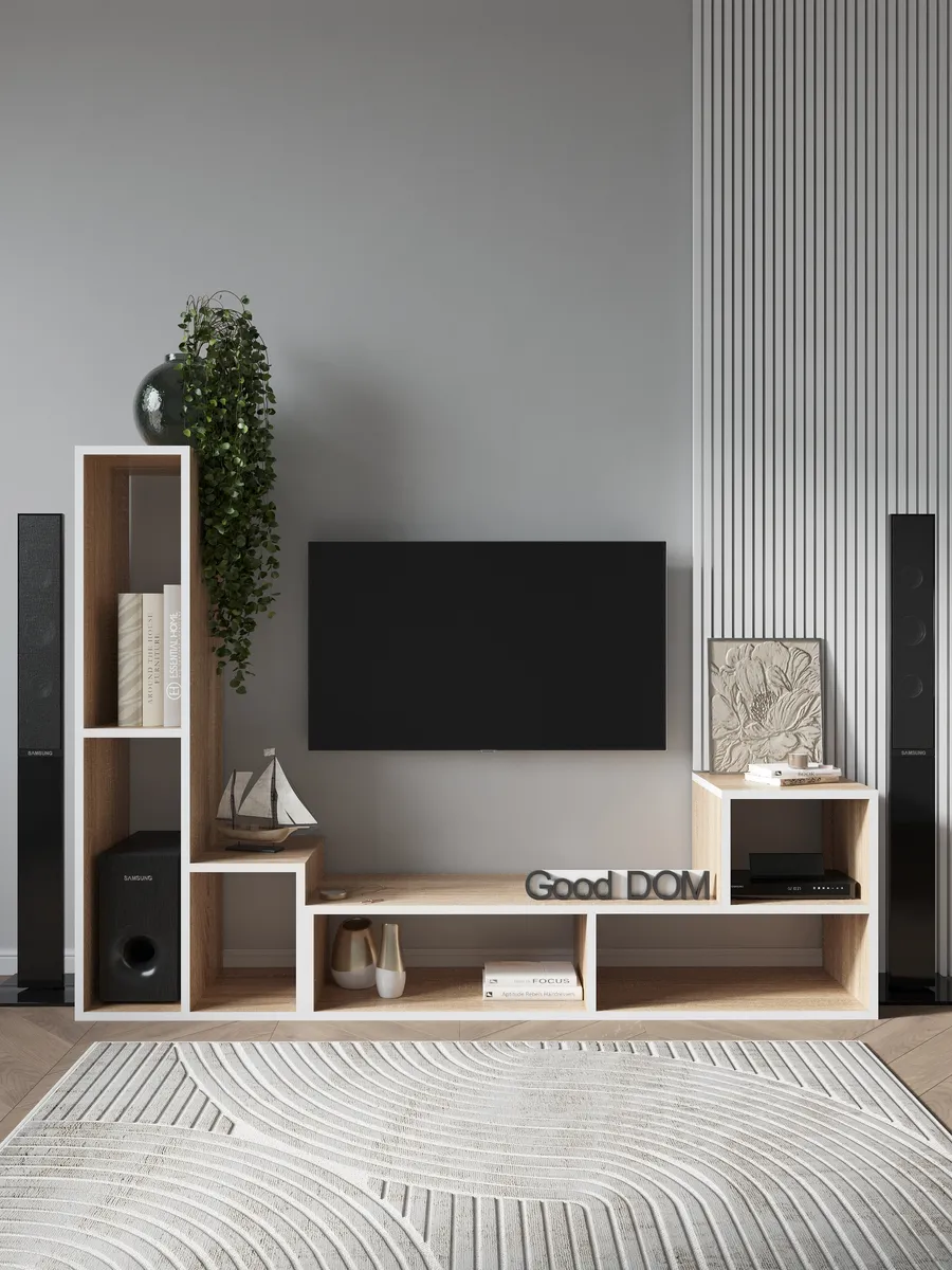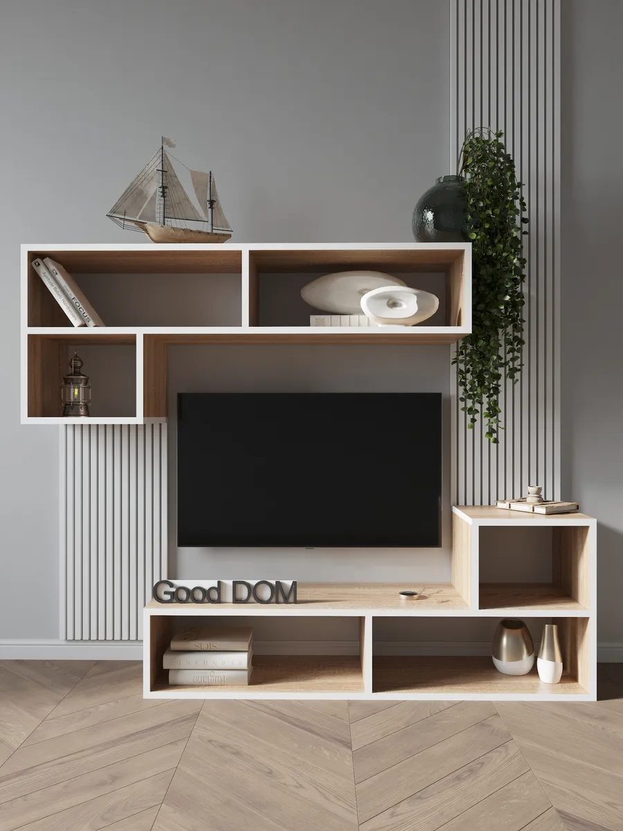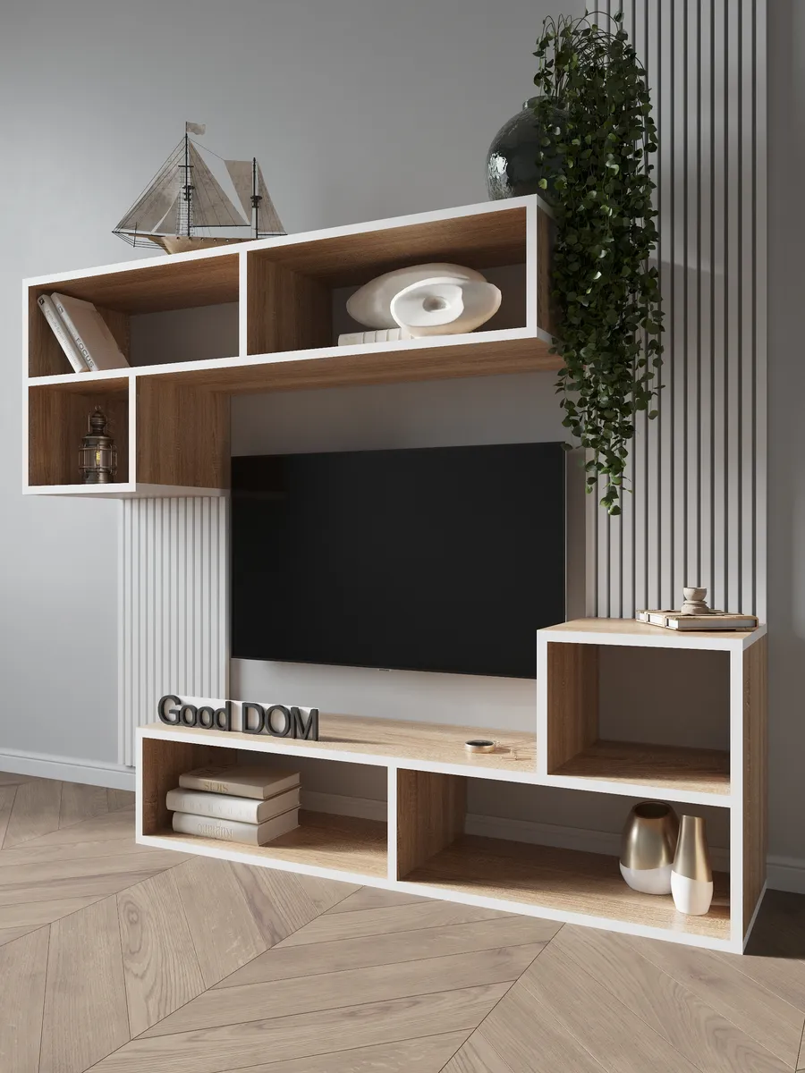 Тумба «Хамелеон» представляет собой тумбу-трансформер, которая по вашему желанию может быть тумбой, стеллажом, полкой напольной или настенной! 10 вариантов сборки позволяют разместить тумбу именно так, как нужно вам. Универсальная напольная полка может быть расположена в любой комнате. В гостиной на тумбе можно расположить гаджеты, книги, растения и цветы, предметы декора. Есть вариант расположения как тумба под тв. В тумбе под телевизор можно расположить все зарядки, провода, пульты управления и прочие нужные аксессуары к ТВ. Так же у стеллажа есть вариант углового размещения. Стеллаж компактно вписывается как полка в угол, но одновременно позволяет функционально использовать пространство. Кроме этого, есть вариант размещения вертикального стелажа, который позволит хранить высокие предметы или книги стопкой довольно компактно, но в то же время вместительно. В детской стеллаж удобно вместит множество игрушек, книг, учебников и тетрадей. Полку напольную можно расположить и в прихожей, вместо громоздкого шкафа-купе или стенки. Открытые полки стеллажа позволяют создать воздушный и необычный образ, не заставляя комнату закрытыми шкафами, съедающими пространство. Универсальная тумба-трансформер выгодно дополнит ваш интерьер, а главное поможет грамотно организовать систему хранения. Выбери свой вариант размещения!
