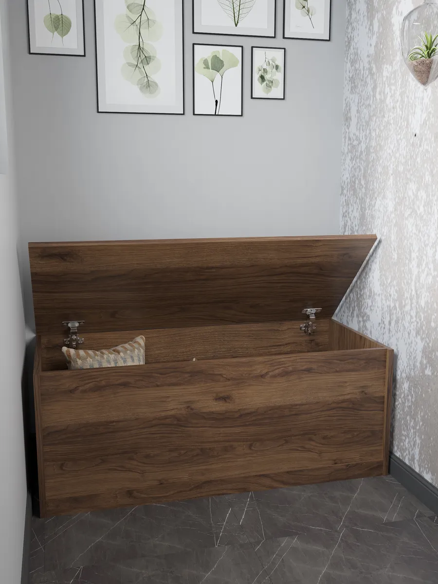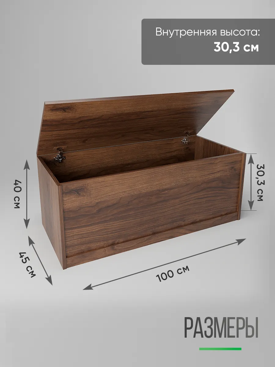 Размеры тумбы ящика с откидной крышкой: ширина 100 см, высота 40 см, глубина 45 см. Доступные цвета: белый, орех, сонома, атланта, венге, дуб золотой, антрацит, дуб катания. Можно положить сверху матрасик и этим сделать напольный диванчик на балкон или в зал, длинную тумбу с сиденьем в прихожую, диванчик для офиса, дачный диван, садовая мебель - своего рода топчан для отдыха в любом помещении.