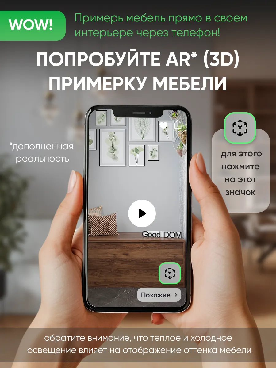 Мы постоянно работаем над качеством нашей продукции, поэтому улучшили упаковку - наша усиленная упаковка Вашу Обувницу при доставке от сломанных углов и сколов! В нашем ассортименте есть много интересных моделей мебели в гостиную или на кухню, а том числе и мебель на балкон - откидные столы, стеллажи, настенные полки, шкафы. Что позволяет удобно собрать комплект мебели от бренда Good дом, все в Дом, которая сочетается между собой. Для того, чтобы посмотреть весь наш ассортимент - просто нажмите на иконку логотипа.