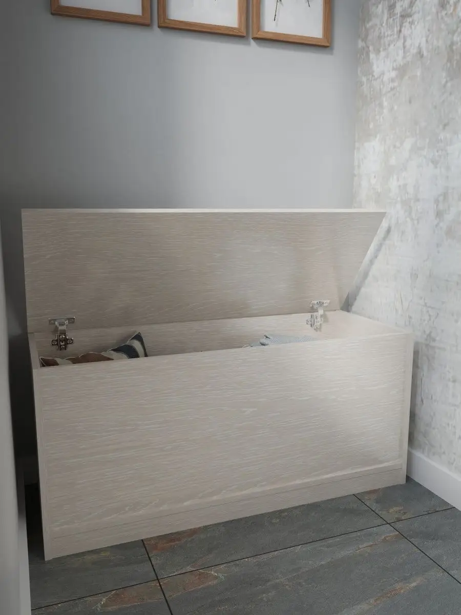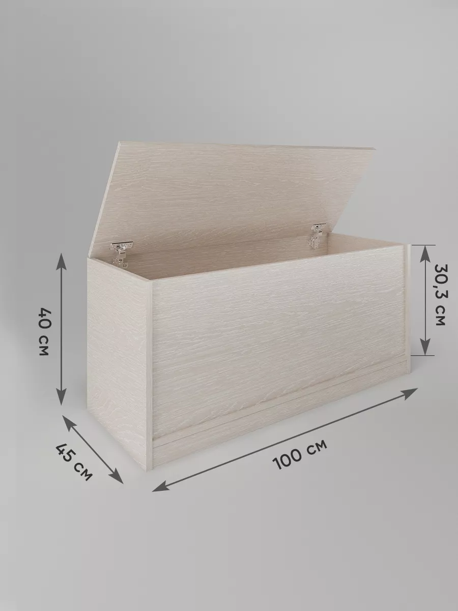 Размеры тумбы ящика с откидной крышкой: ширина 100 см, высота 40 см, глубина 45 см. Доступные цвета: белый, орех, сонома, атланта, венге, дуб золотой, антрацит, дуб катания. Можно положить сверху матрасик и этим сделать напольный диванчик на балкон или в зал, длинную тумбу с сиденьем в прихожую, диванчик для офиса, дачный диван, садовая мебель - своего рода топчан для отдыха в любом помещении.