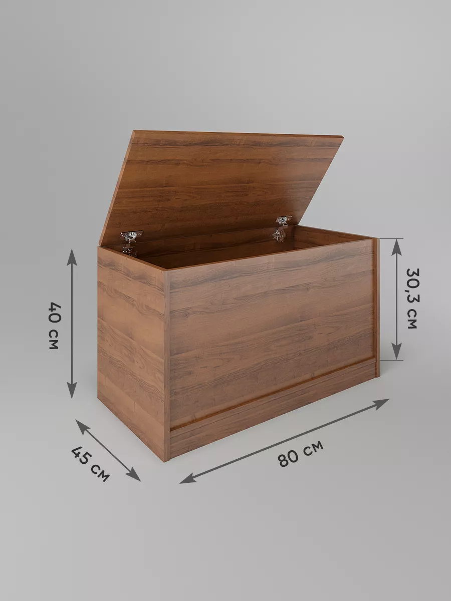 Размеры тумбы ящика с откидной крышкой: ширина 80 см, высота 40 см, глубина 45 см. Доступные цвета: белый, орех, сонома, атланта, венге, дуб золотой, антрацит, дуб катания. Можно положить сверху матрасик и этим сделать напольный диванчик на балкон или в зал, длинную тумбу с сиденьем в прихожую, диванчик для офиса, дачный диван, садовая мебель - своего рода топчан для отдыха в любом помещении.