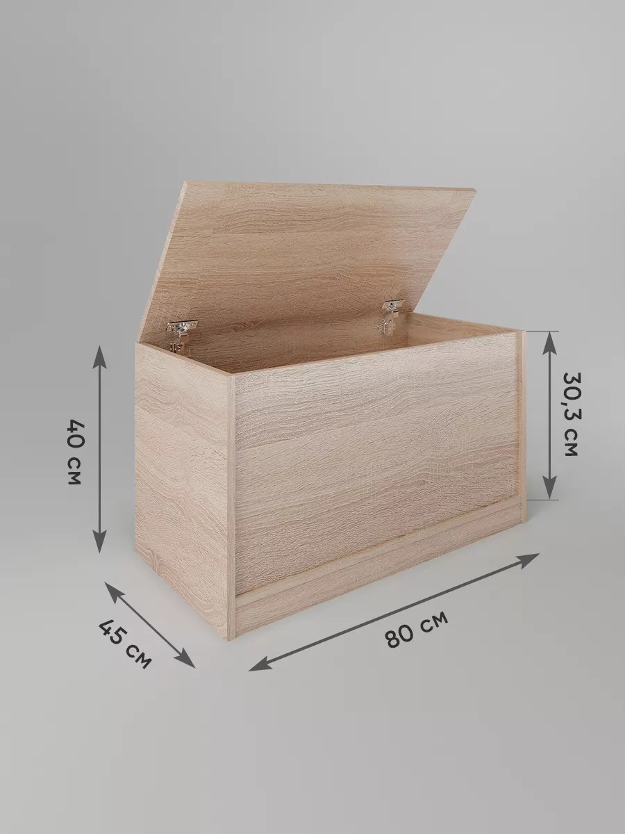 Размеры тумбы ящика с откидной крышкой: ширина 80 см, высота 40 см, глубина 45 см. Доступные цвета: белый, орех, сонома, атланта, венге, дуб золотой, антрацит, дуб катания. Можно положить сверху матрасик и этим сделать напольный диванчик на балкон или в зал, длинную тумбу с сиденьем в прихожую, диванчик для офиса, дачный диван, садовая мебель - своего рода топчан для отдыха в любом помещении.