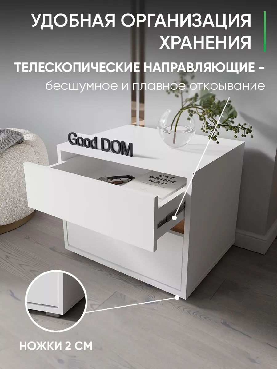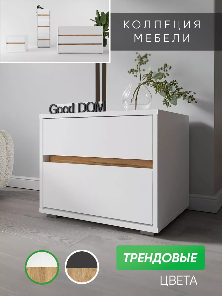 Прикроватная тумбочка изготовлена на новом оборудовании из высококачественных материалов ЛДСП. Мы дорожим качеством и внешним видом нашей продукции, поэтому вся продукция проверяется перед отправкой отделом контроля и упаковывается в коробки с дополнительной твердой защитой. В нашем ассортименте есть много интересных моделей мебели, что позволяет собрать комплект мебели от бренда Good дом, все в Дом, которая сочетается между собой. Чтобы посмотреть всё - просто нажмите на иконку логотипа.