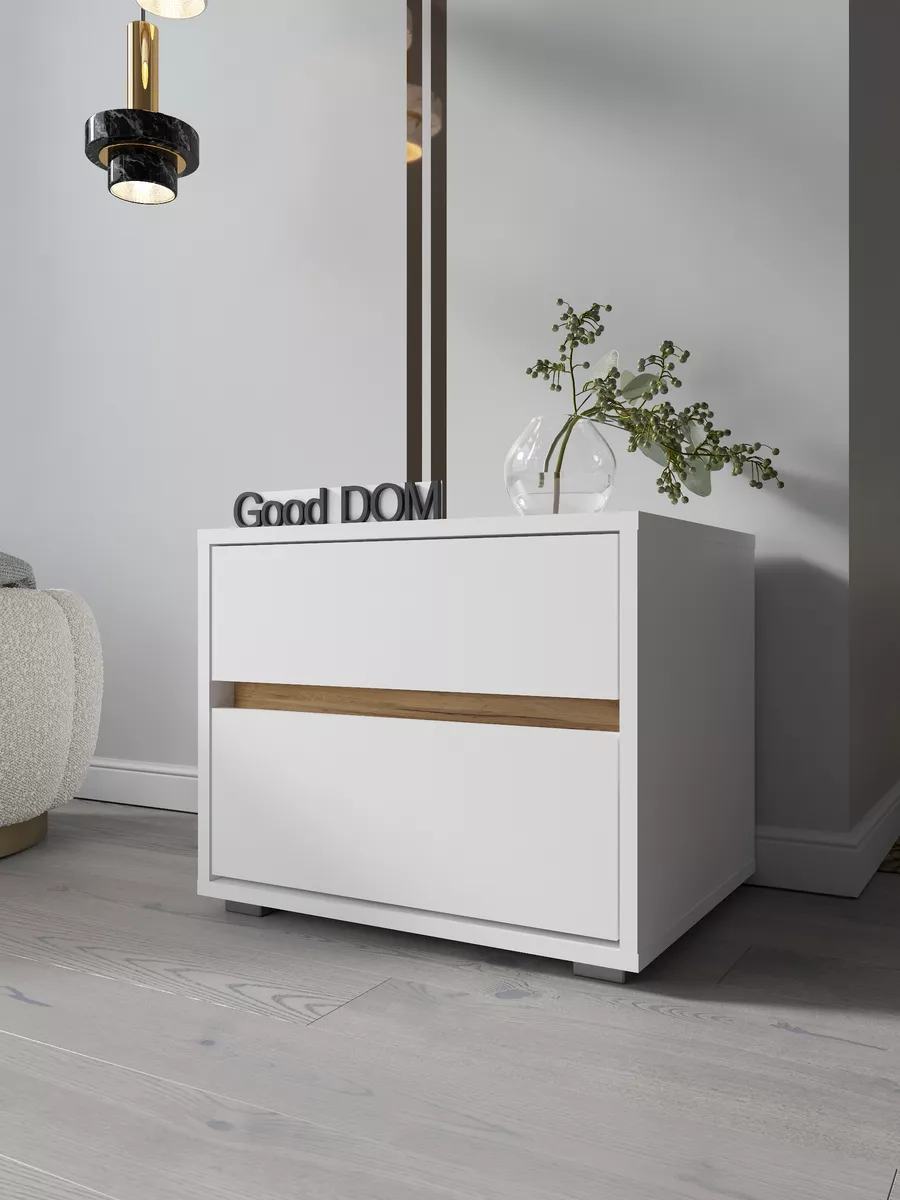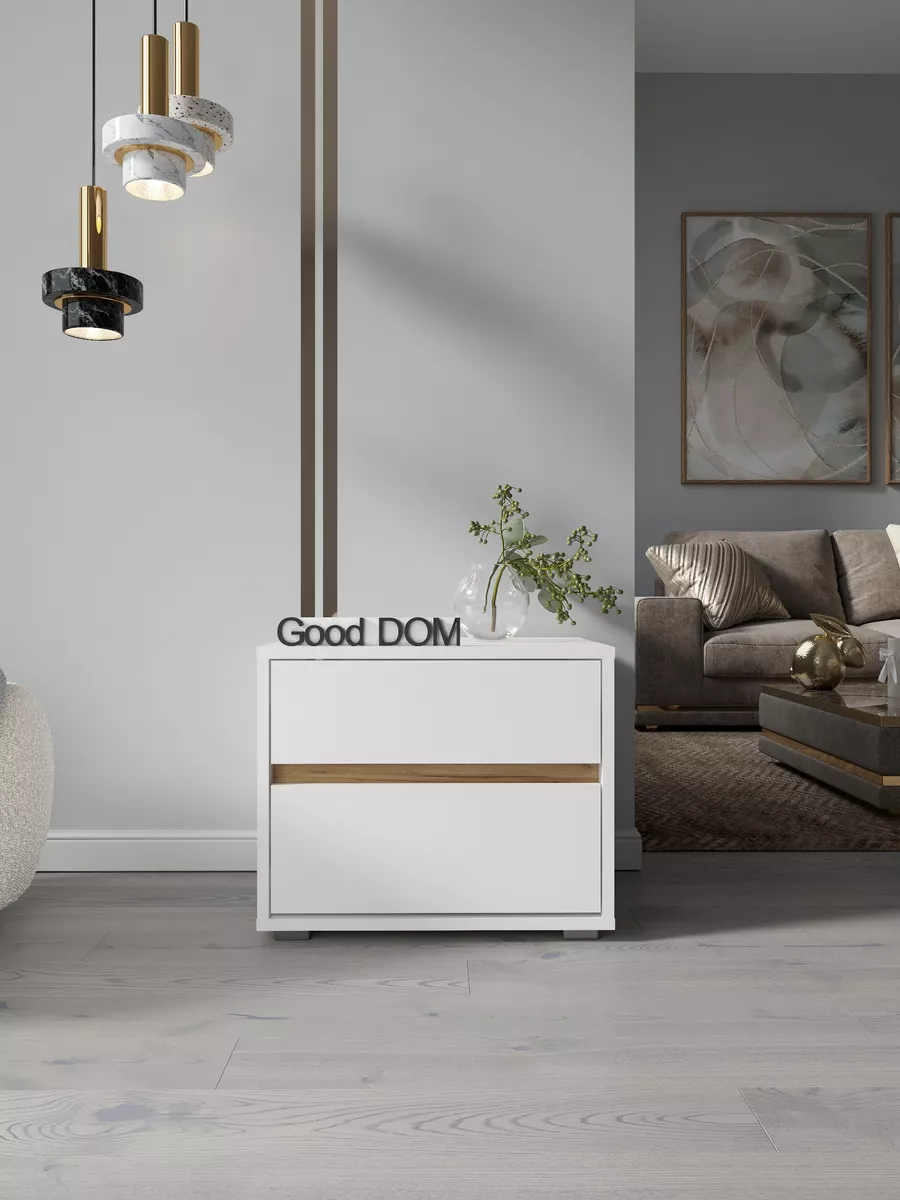 Тумба прикроватная напольная - неотъемлимая часть интерьера любой спальни. Наша прикроватная тумбочка в современном дизайне со вставкой на ножках - ваш лучший выбор. Тумбочка напольная поможет грамонтно организовать пространство у кровати и разместить необходимые вам вещи: книги, телефон или планшет, зарядные устройства и другие мелочи. Тумба с двумя выдвижными ящиками не съедает пространство и подойдет так же для узких коридоров как тумба в прихожую. Тумба напольная также может служить как столик для напитков, а в детской комнате может использоваться как консольный столик. Тумбочка в прихожую, благодаря ящикам, сможет заменить вам большую обувницу в малогабаритной квартире.