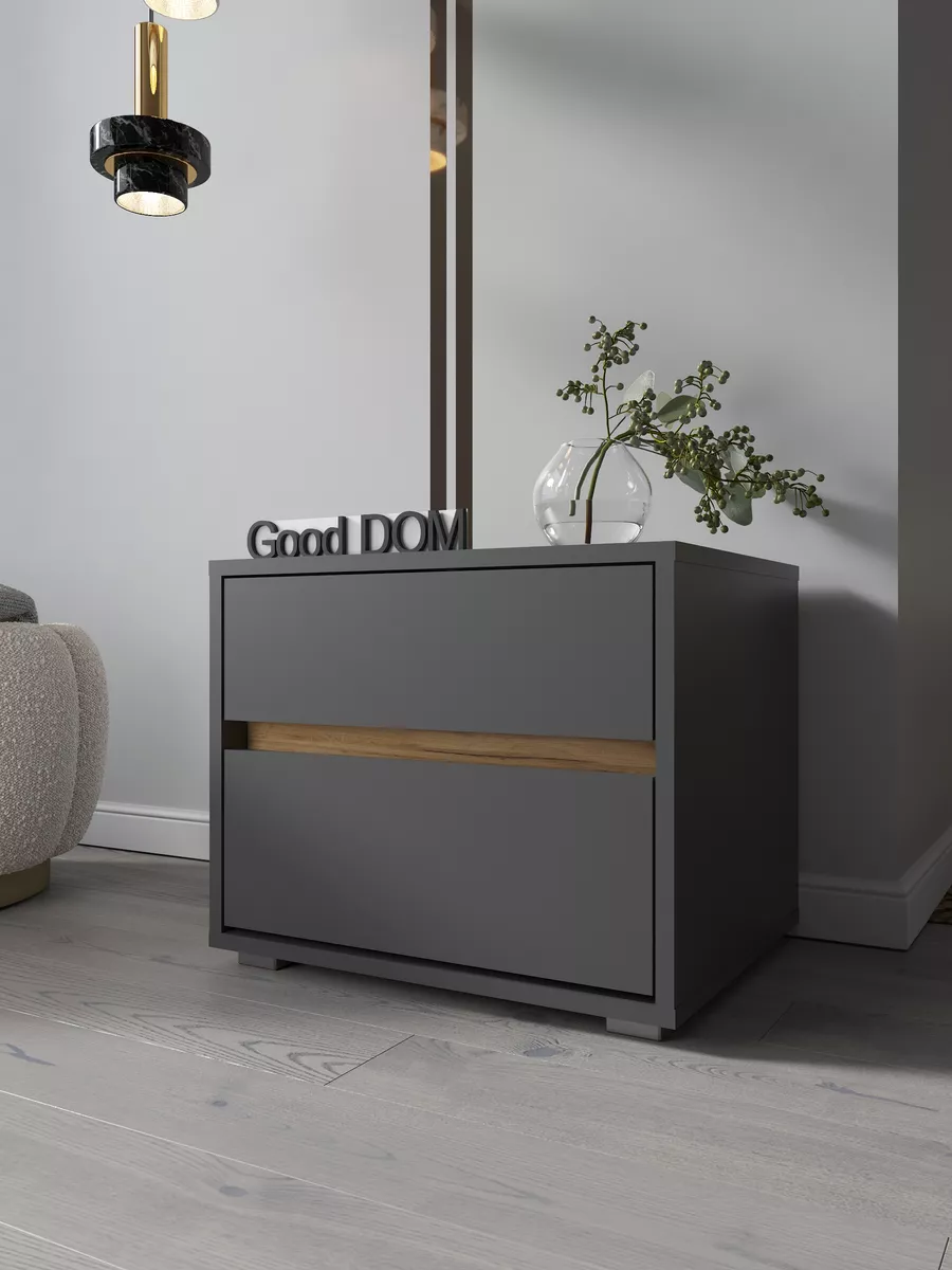 Тумба прикроватная напольная - неотъемлимая часть интерьера любой спальни. Наша прикроватная тумбочка в современном дизайне со вставкой на ножках - ваш лучший выбор. Тумбочка напольная поможет грамонтно организовать пространство у кровати и разместить необходимые вам вещи: книги, телефон или планшет, зарядные устройства и другие мелочи. Тумба с двумя выдвижными ящиками не съедает пространство и подойдет так же для узких коридоров как тумба в прихожую. Тумба напольная также может служить как столик для напитков, а в детской комнате может использоваться как консольный столик. Тумбочка в прихожую, благодаря ящикам, сможет заменить вам большую обувницу в малогабаритной квартире.