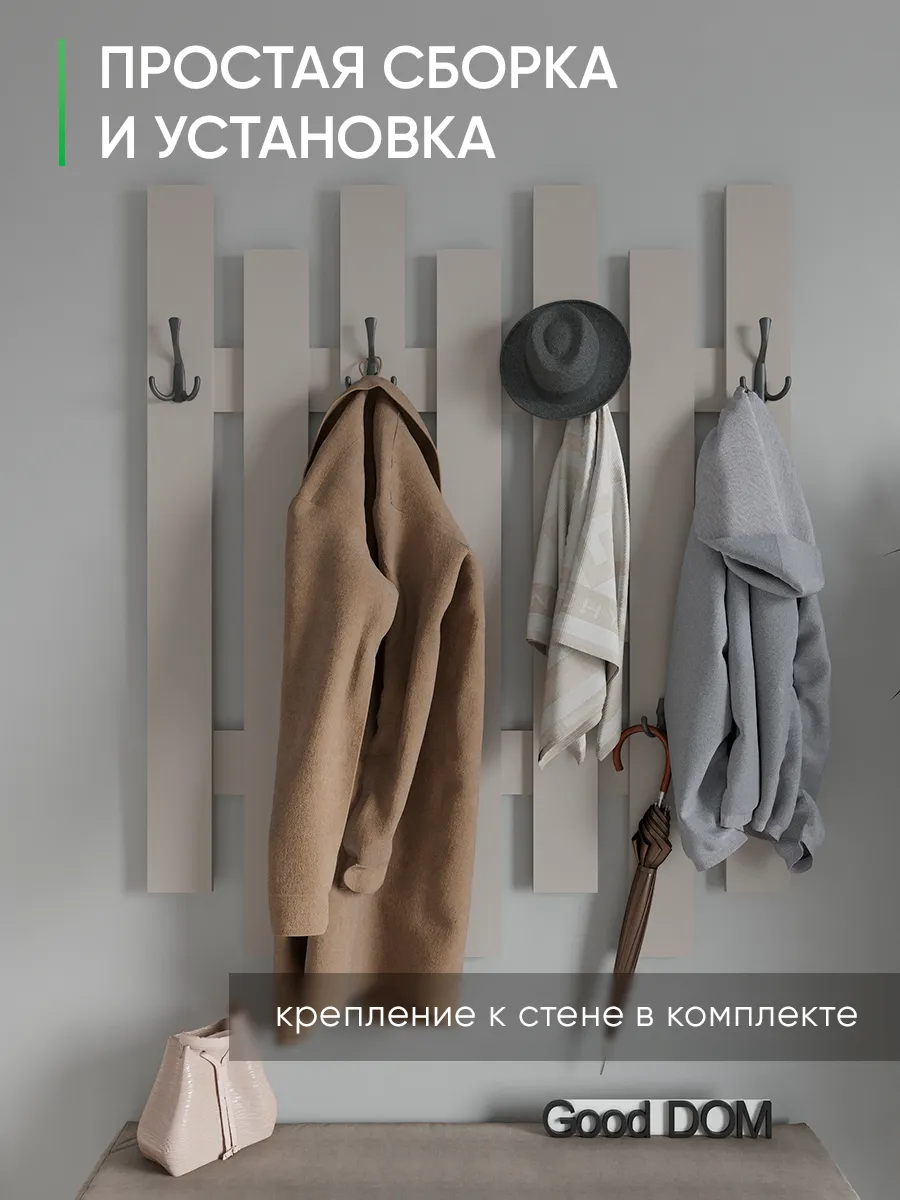Если вы ищете стильное, удобное и практичное решение для хранения вашей одежды, то эта вешалка настенная - идеальный выбор для вас. Сочетая в себе превосходный дизайн, надежность и функциональность, она станет отличным дополнением к вашей прихожей. Вешалка входит в серию мебели, таким образом вы с легкостбью можете собрать комплект в едином стиле в одном месте. В нашем магазине Good дом, все в Дом можно подобрать и другую мебель для прихожей.