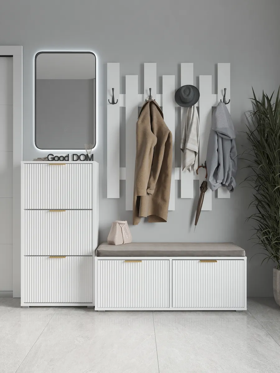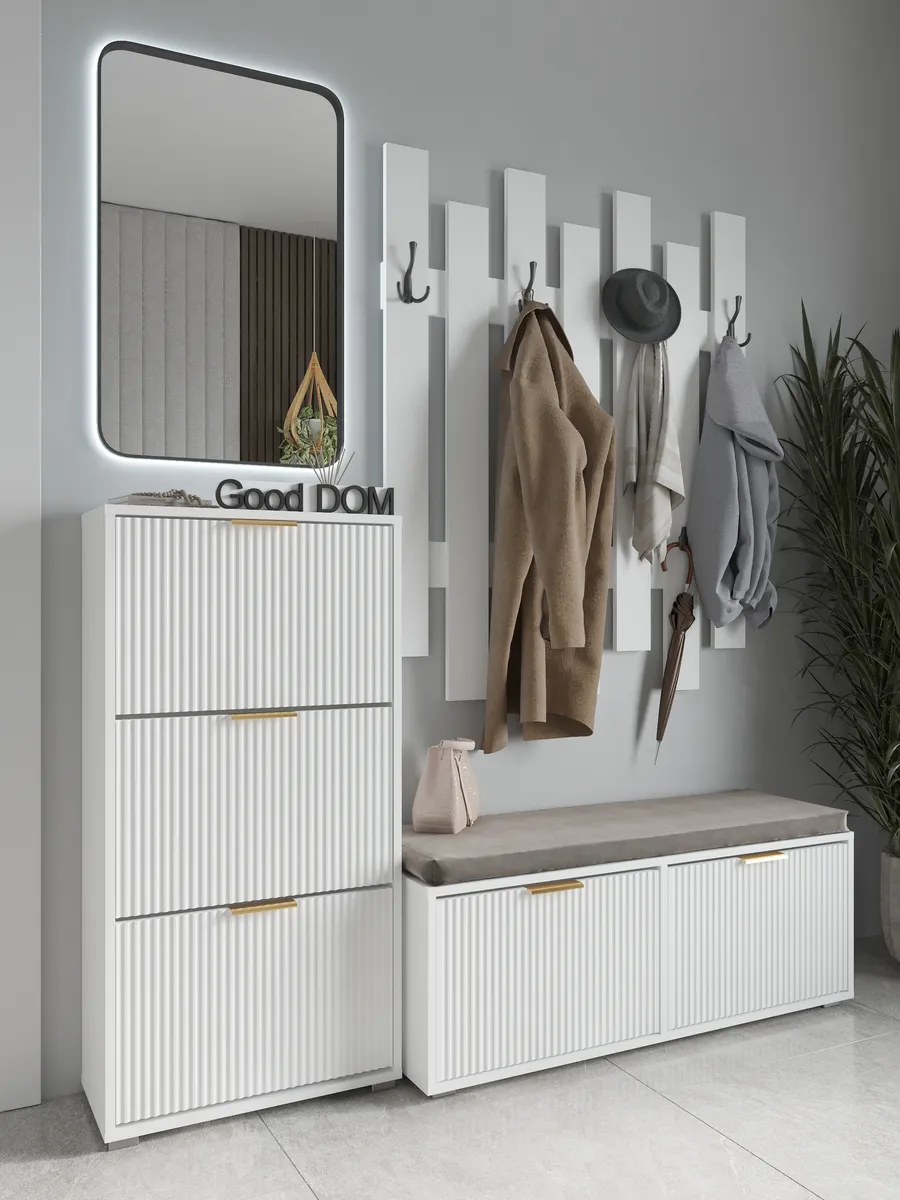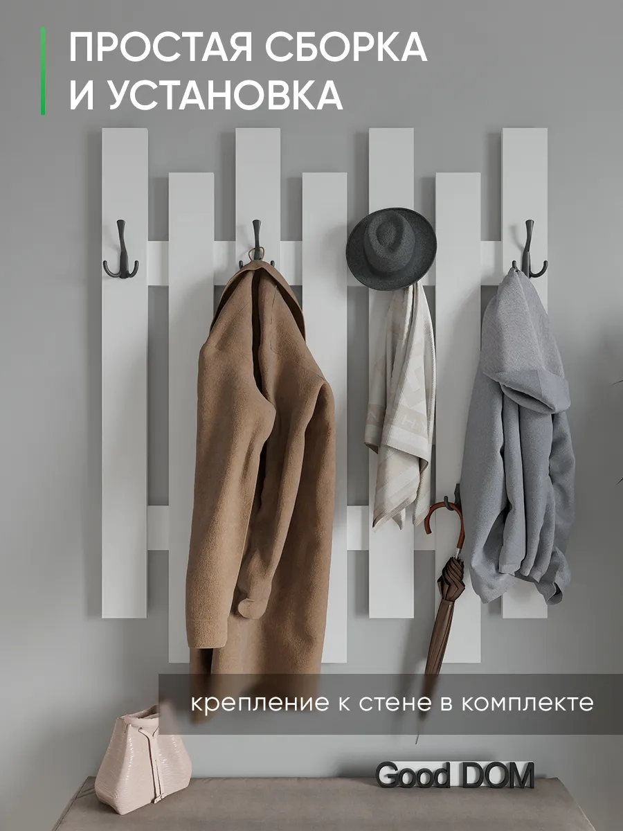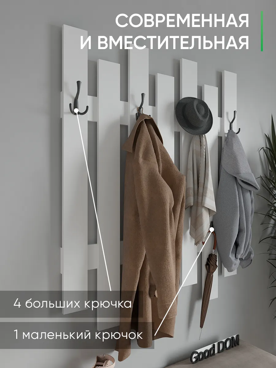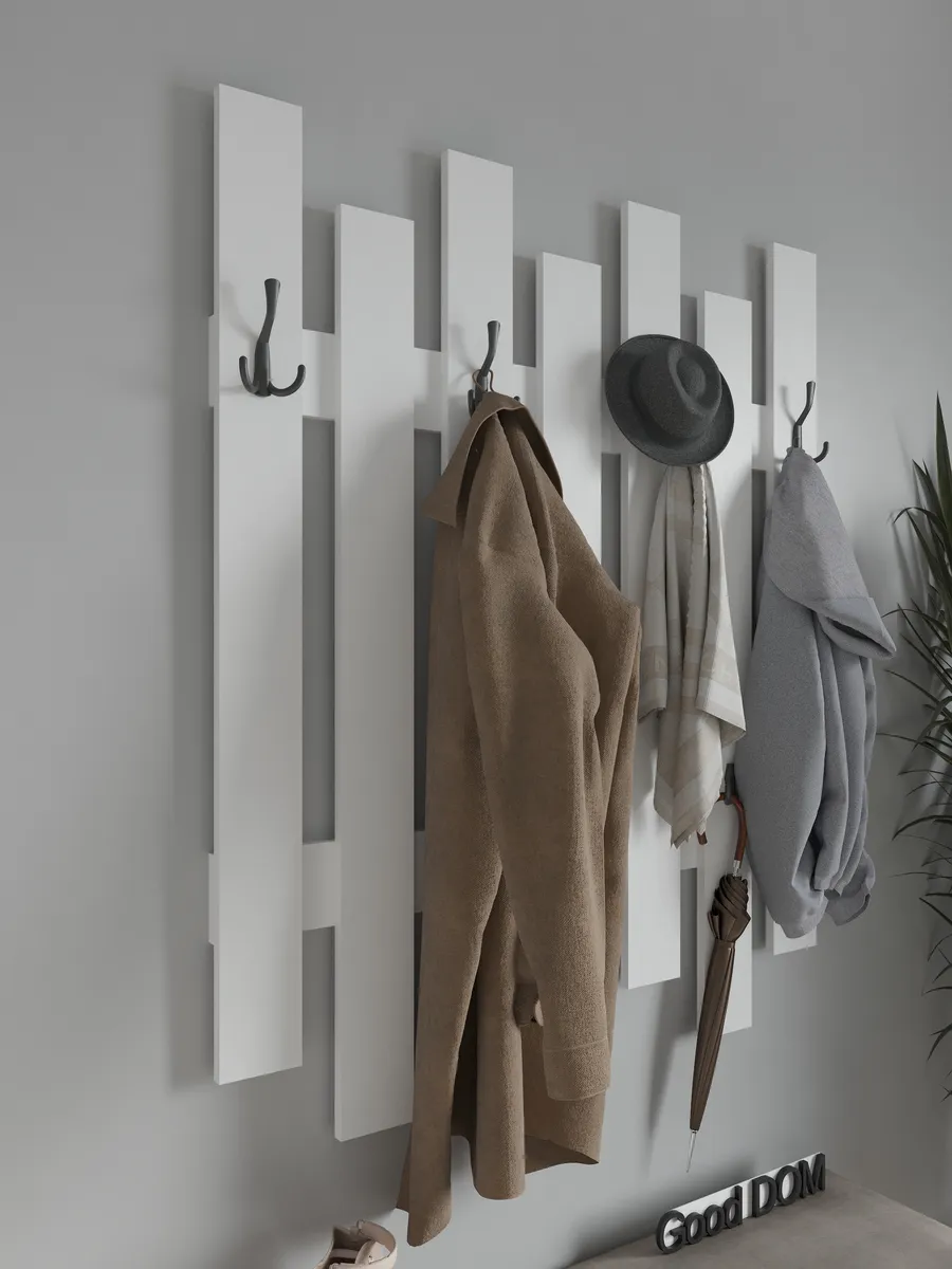 Стильный настенный крючок из дерева станет отличным дополнением для прихожей или коридора. Прочный деревянный элемент мебели выполнен из дуба и сочетает в себе дизайнерский стиль и функциональность. Минималистичный вид в стиле лофт отлично впишется в современный интерьер, добавляя уют и порядок. На верхней полке можно разместить небольшие вещи, а крючки позволят удобно повесить одежду, сумку или брюки. Золотой оттенок крючков гармонично сочетается с белой основой, создавая элегантный и свежий стиль. Благодаря качественному материалу и надежному креплению, установка не требует сложного сверления, что упрощает монтаж на стену. Эта настенная мебель обеспечивает большой функционал в компактном формате, экономя пространство и поддерживая порядок в доме. Ширина изделия и количество крючков рассчитаны на удобное использование, позволяя разместить несколько вещей одновременно. Зеркало и другие элементы стенки в прихожей будут выгодно дополнять общий дизайн, создавая цельный современный вид.