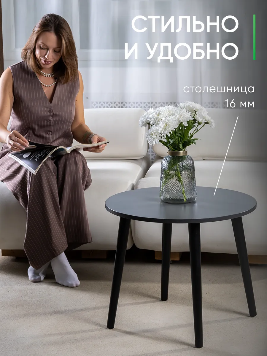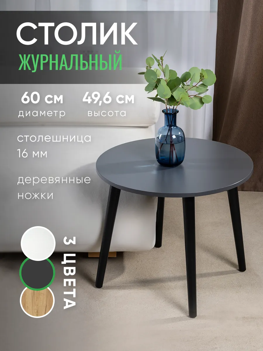 Встречайте наш компактный предмет мебели, который станет идеальным решением для вашей гостиной, прихожей или спальни! Этот стол выполнен в современном стиле, сочетающем элементы лофт и скандинавский дизайн, что придает ему особую привлекательность. С высотой 49,6 см и диаметром 60 см, он оптимально подходит для организации пространства, не занимая много места.