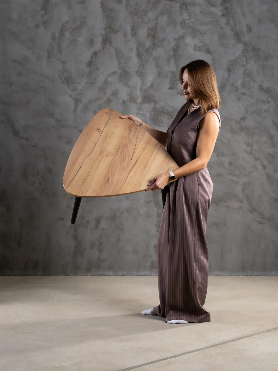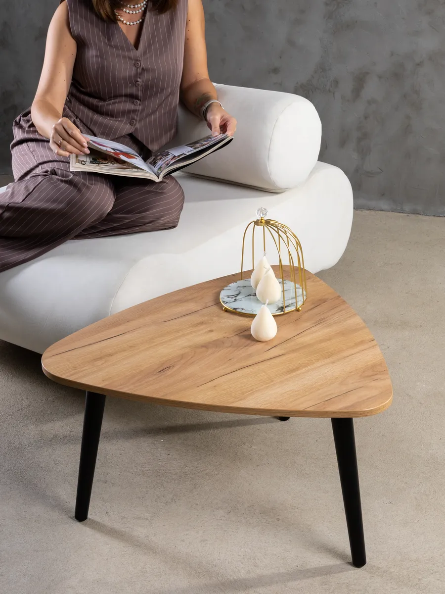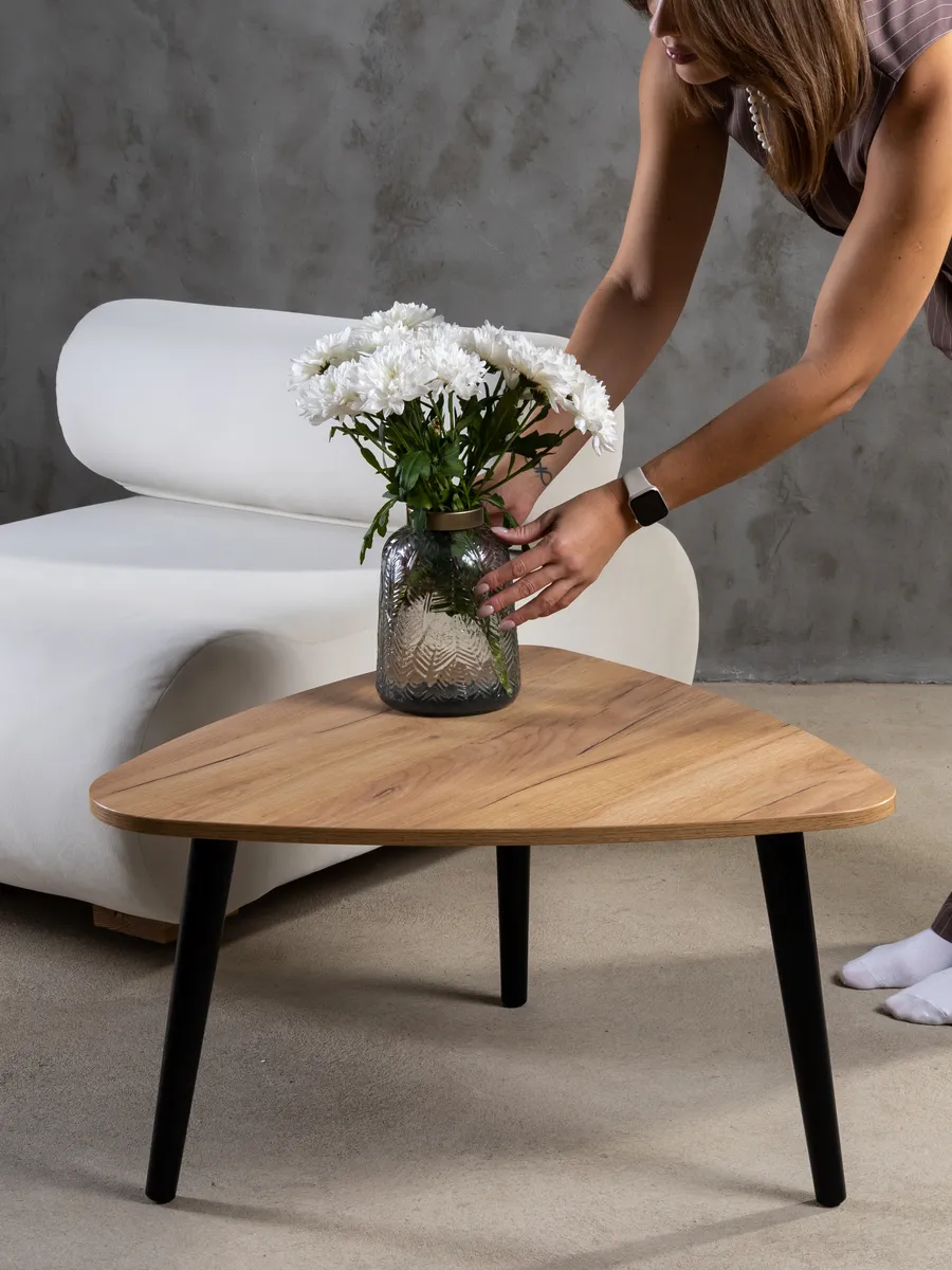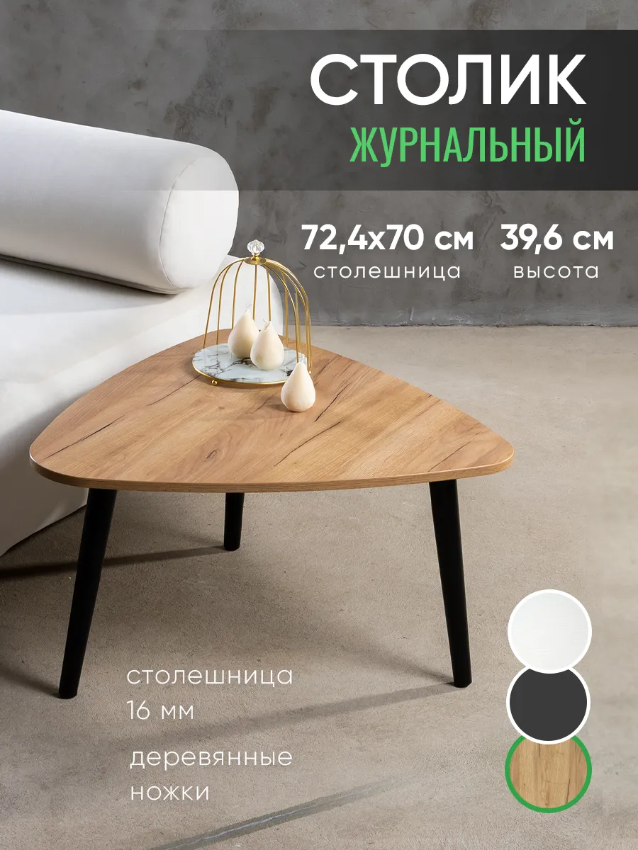 Журнальный столик - идеальное решение для вашей гостиной! Этот столик не только функционален, но и стильно дополнит интерьер помещения. Столик журнальный идеально подойдет для тех, кто ценит удобство и практичность. С его помощью вы сможете организовать пространство в гостиной так, как вам удобно - будь то ужин за кофе или уютный вечер с книгой. Этот стол для гостиной - оптимальный выбор для тех, кто ценит качество и функциональность. Столик выполнен из высококачественных материалов - ЛДСП. Журнальный столик - идеальное сочетание комфорта, функциональности и стиля в вашем интерьере. Этот интерьерный треугольный журнальный столик в стиле лофт - настоящая находка для ценителей красивых и практичных решений в дизайне гостиной. Маленький, но при этом очень функциональный журнальный столик. Треугольная столешница придает ему особый шарм и делает его универсальным для различных стилей интерьера. Данное дизайнерское решение позволяет привнести ощущение легкости и элегантности в вашу гостиную. Такой стол можно также использовать как чайный или кофейный столик. Универсальный журнальный столик на деревянных ножках - отличное дополнение для вашей спальни. Мини стол может заменить прикроватную тумбу и отлично вписаться в интерьер современной спальни. Он сочетает в себе функциональность и стиль, что делает его идеальным выбором для любого интерьера. Журнальный столик в стиле лофт не только удобен, но и функционален. Этот столик может использоваться как прикроватная тумба в спальне, столик под цветы и декор, а также будет приятным дополнением в зоне ожидания. В коллекцию входят так же другие формы, что позволяет собрать комплект, идеально сочетающийся между собой.