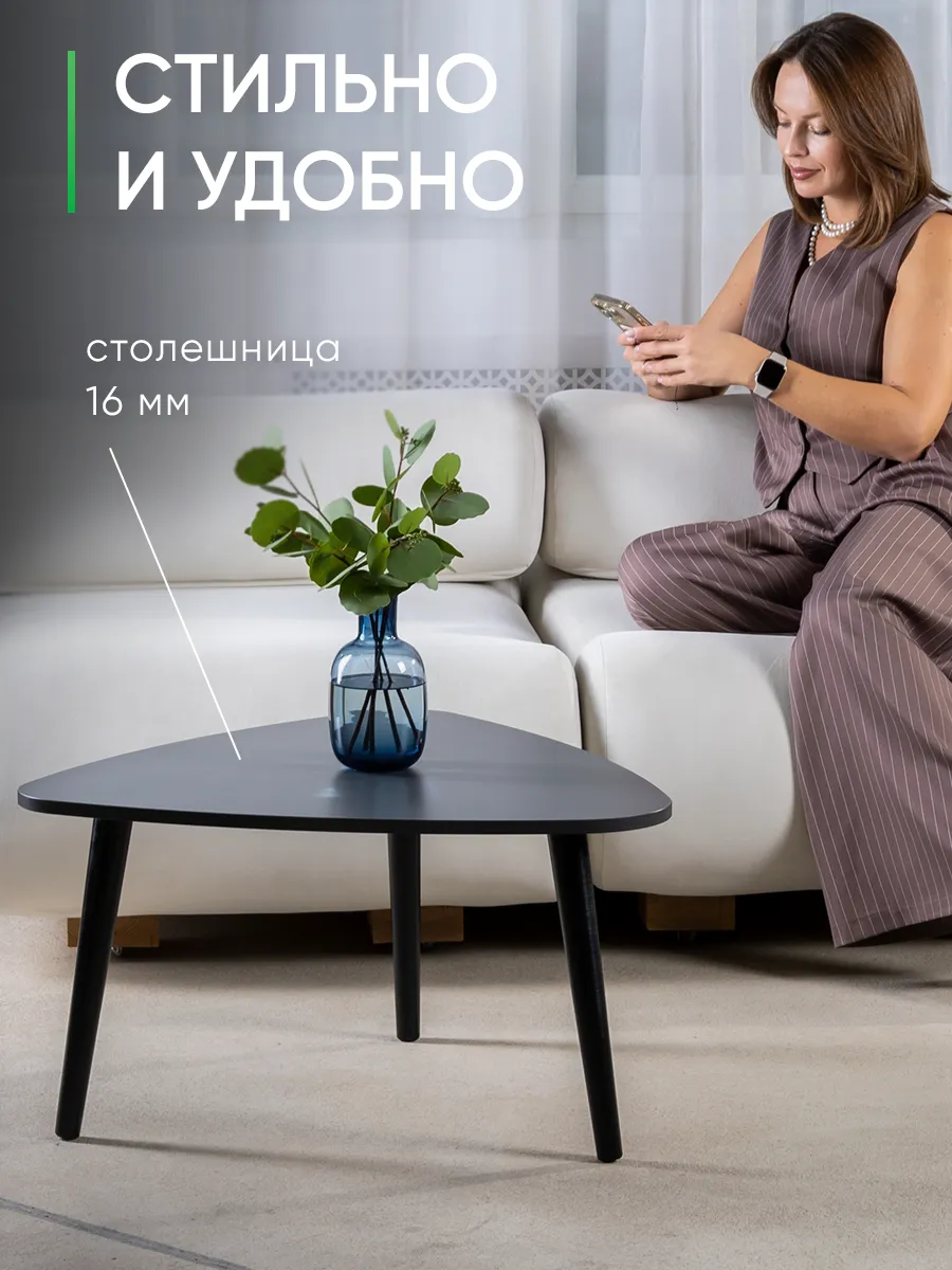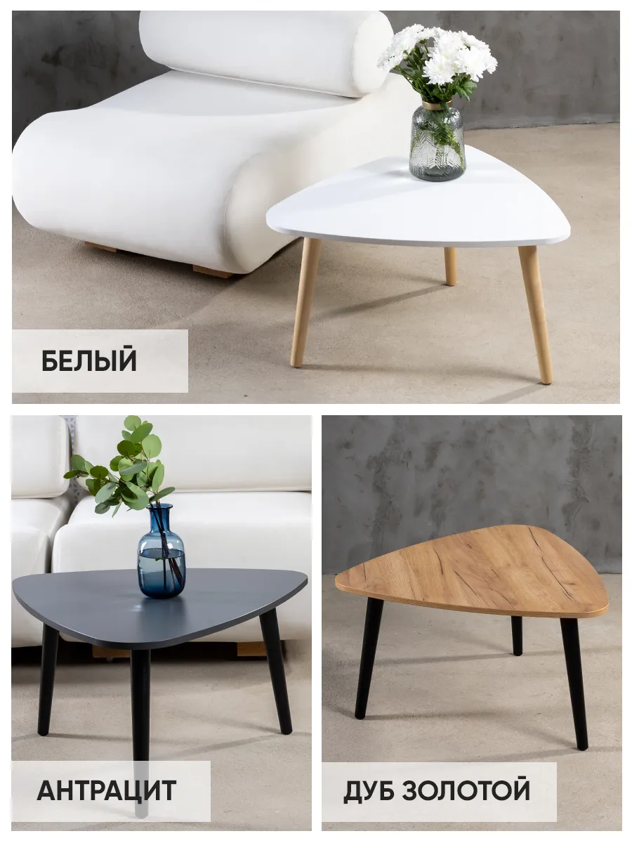 Журнальный столик - идеальное решение для вашей гостиной! Этот столик не только функционален, но и стильно дополнит интерьер помещения. Столик журнальный идеально подойдет для тех, кто ценит удобство и практичность. С его помощью вы сможете организовать пространство в гостиной так, как вам удобно - будь то ужин за кофе или уютный вечер с книгой. Этот стол для гостиной - оптимальный выбор для тех, кто ценит качество и функциональность. Столик выполнен из высококачественных материалов - ЛДСП. Журнальный столик - идеальное сочетание комфорта, функциональности и стиля в вашем интерьере. Этот интерьерный треугольный журнальный столик в стиле лофт - настоящая находка для ценителей красивых и практичных решений в дизайне гостиной. Маленький, но при этом очень функциональный журнальный столик. Треугольная столешница придает ему особый шарм и делает его универсальным для различных стилей интерьера. Данное дизайнерское решение позволяет привнести ощущение легкости и элегантности в вашу гостиную. Такой стол можно также использовать как чайный или кофейный столик. Универсальный журнальный столик на деревянных ножках - отличное дополнение для вашей спальни. Мини стол может заменить прикроватную тумбу и отлично вписаться в интерьер современной спальни. Он сочетает в себе функциональность и стиль, что делает его идеальным выбором для любого интерьера. Журнальный столик в стиле лофт не только удобен, но и функционален. Этот столик может использоваться как прикроватная тумба в спальне, столик под цветы и декор, а также будет приятным дополнением в зоне ожидания. В коллекцию входят так же другие формы, что позволяет собрать комплект, идеально сочетающийся между собой.