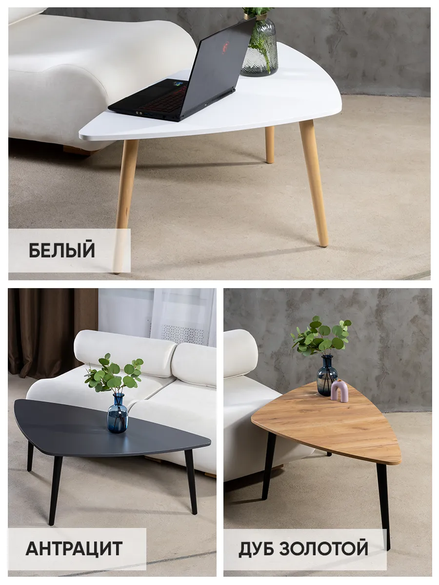 Журнальный столик - идеальное решение для вашей гостиной! Этот столик не только функционален, но и стильно дополнит интерьер помещения. Столик журнальный идеально подойдет для тех, кто ценит удобство и практичность. С его помощью вы сможете организовать пространство в гостиной так, как вам удобно - будь то ужин за кофе или уютный вечер с книгой. Этот стол для гостиной - оптимальный выбор для тех, кто ценит качество и функциональность. Столик выполнен из высококачественных материалов - ЛДСП. Журнальный столик - идеальное сочетание комфорта, функциональности и стиля в вашем интерьере. Этот интерьерный треугольный журнальный столик в стиле лофт - настоящая находка для ценителей красивых и практичных решений в дизайне гостиной. Маленький, но при этом очень функциональный журнальный столик. Треугольная столешница придает ему особый шарм и делает его универсальным для различных стилей интерьера. Данное дизайнерское решение позволяет привнести ощущение легкости и элегантности в вашу гостиную. Такой стол можно также использовать как чайный или кофейный столик. Универсальный журнальный столик на деревянных ножках - отличное дополнение для вашей спальни. Мини стол может заменить прикроватную тумбу и отлично вписаться в интерьер современной спальни. Он сочетает в себе функциональность и стиль, что делает его идеальным выбором для любого интерьера. Журнальный столик в стиле лофт не только удобен, но и функционален. Этот столик может использоваться как прикроватная тумба в спальне, столик под цветы и декор, а также будет приятным дополнением в зоне ожидания. В коллекцию входят так же другие формы, что позволяет собрать комплект, идеально сочетающийся между собой.